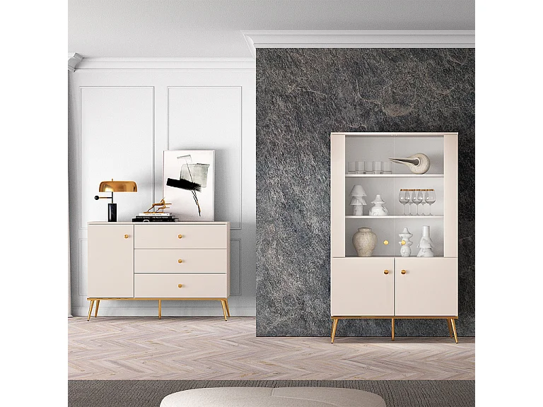 Vaisselier 4 portes Olivia Cachemire et Doré