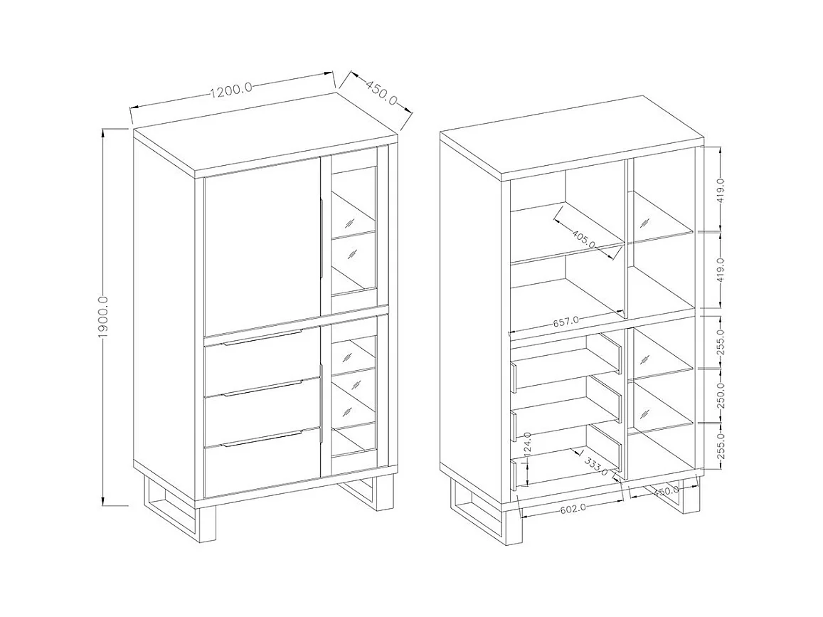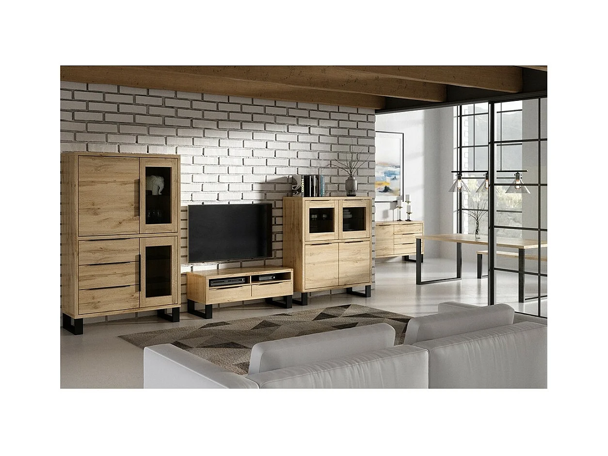 Vaisselier coloris chêne collection MILO. Finition noires. Meuble idéal pour votre salle à manger.