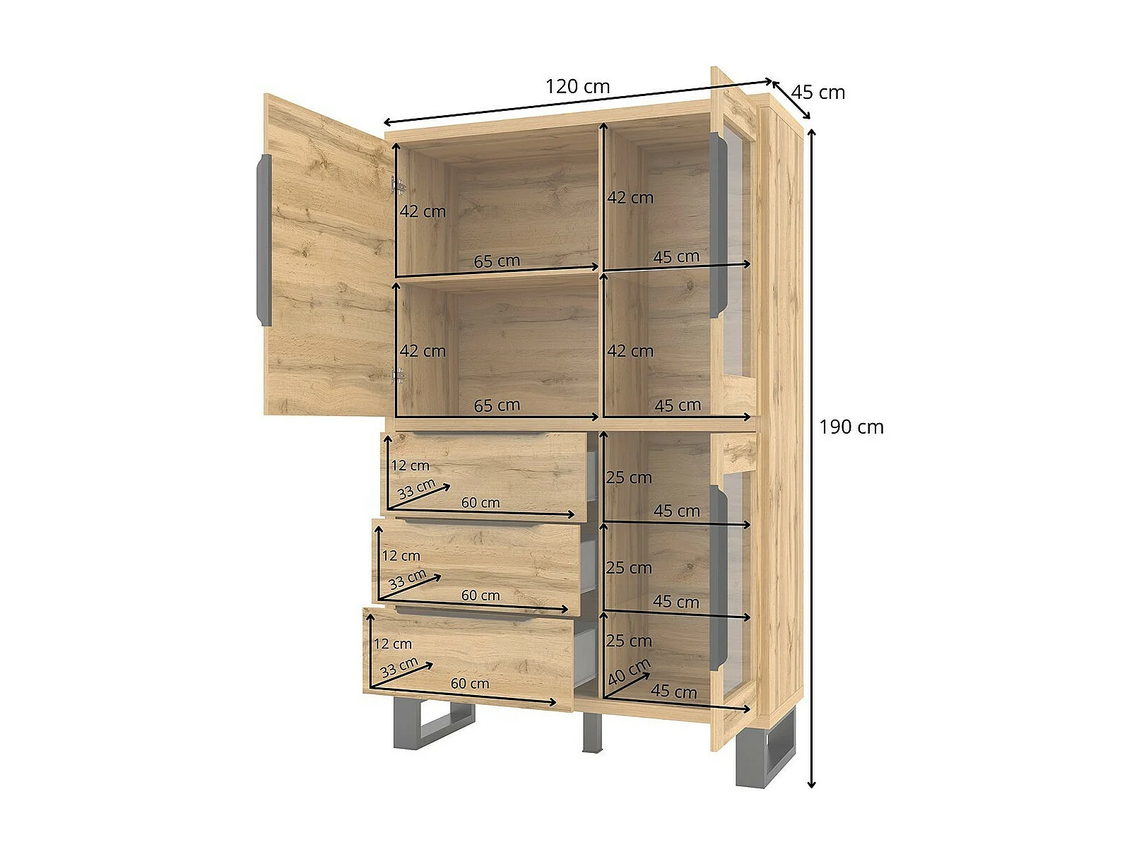 Vitrine, argentier, vaisselier MILOS. Coloris chêne et finitions noire. Meuble idéal pour votre salle à manger.