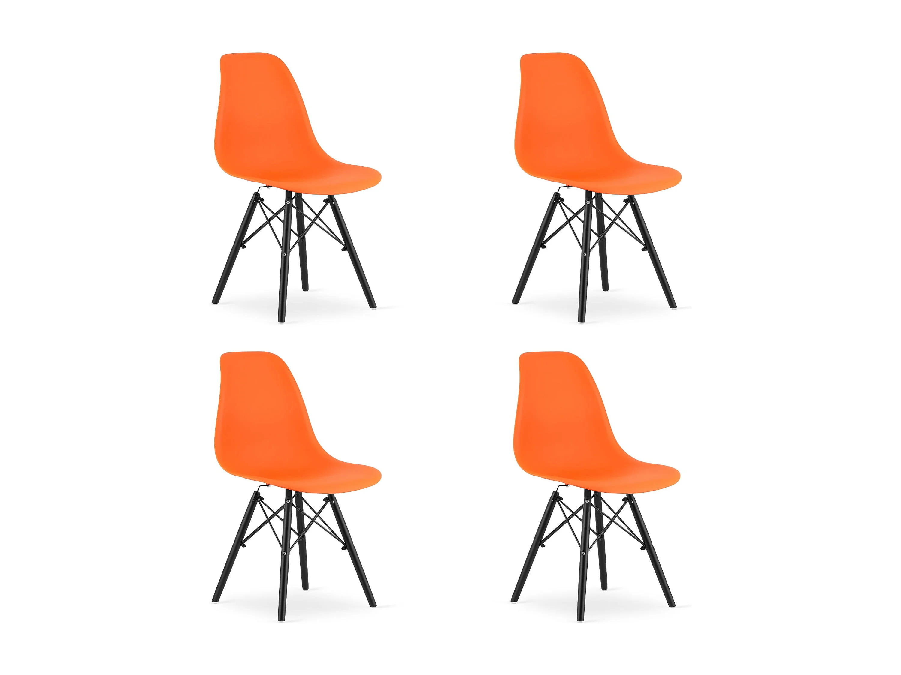 Valora OSAKA Chaise ergonomique orange et pieds noirs pour salle à manger x4
