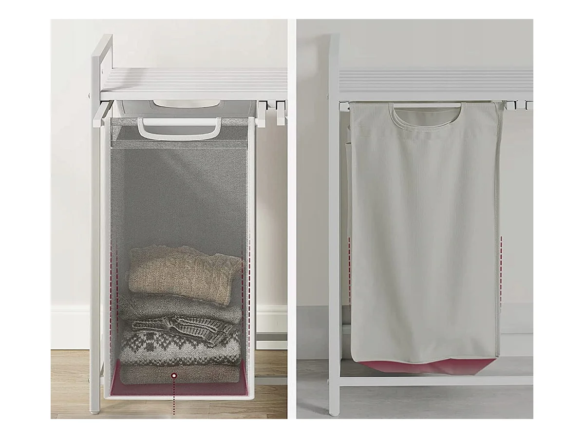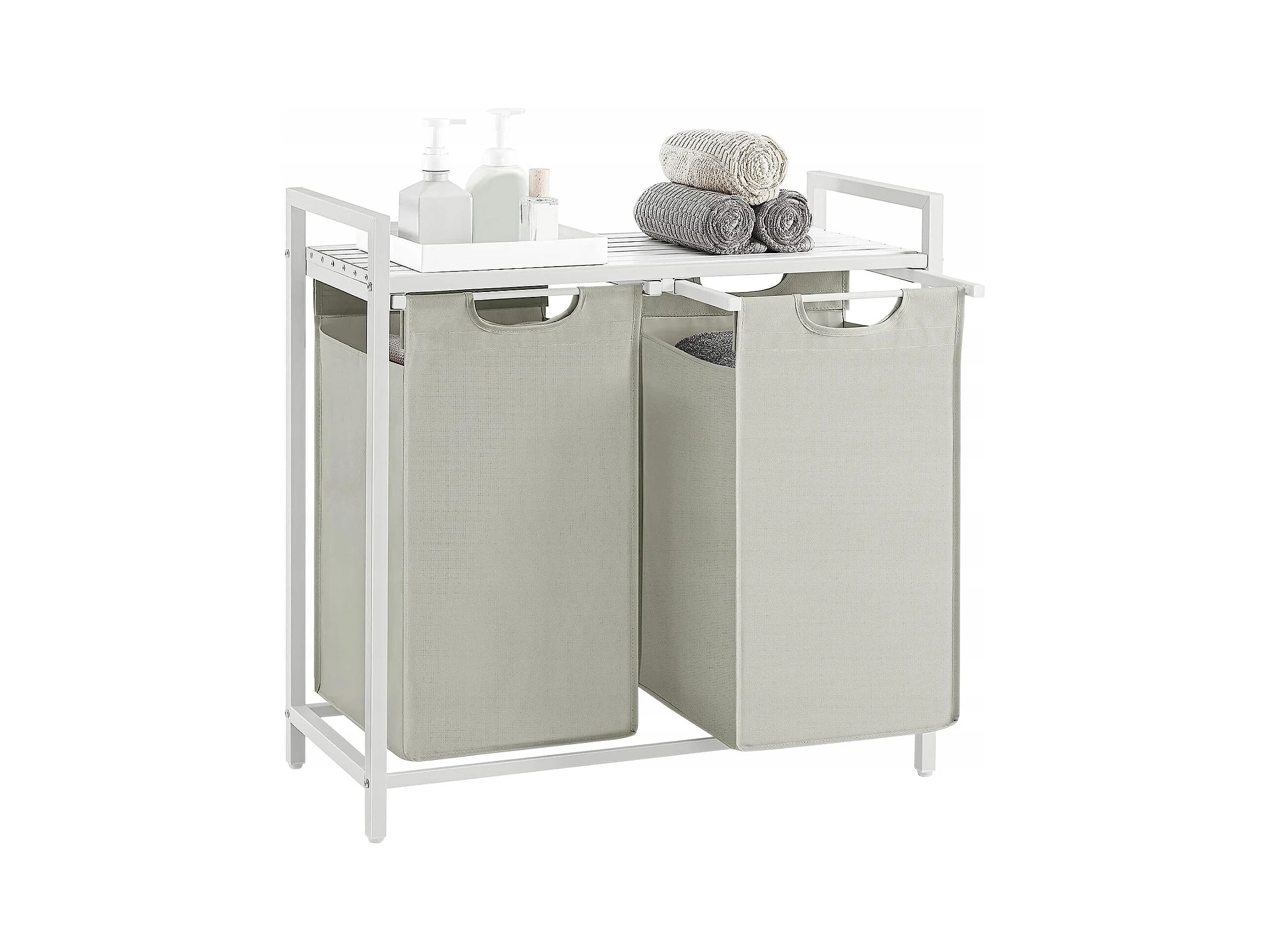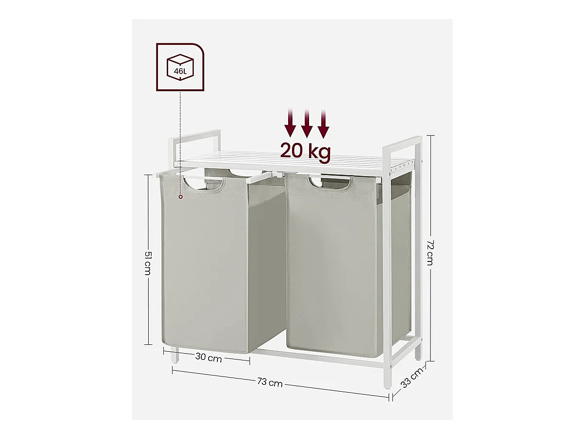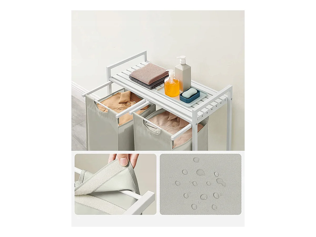 Panier à linge, seau à linge avec étagère, amovible, cadre métallique, 65 l, 50 x 33 x 72 cm, blanc
