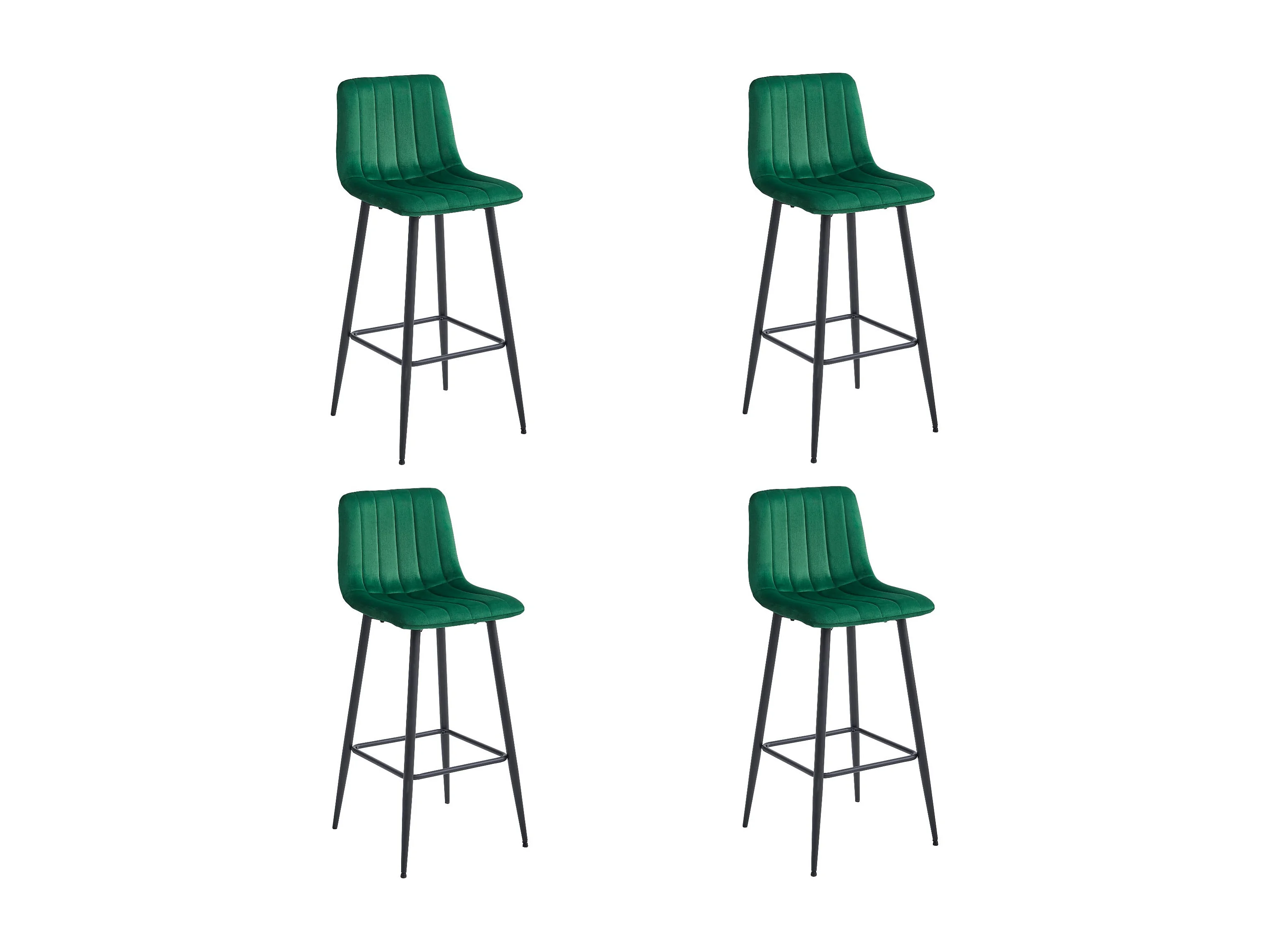 Valora POZZA Tabouret en velours vert foncé, pieds noirs, pour cuisine x4