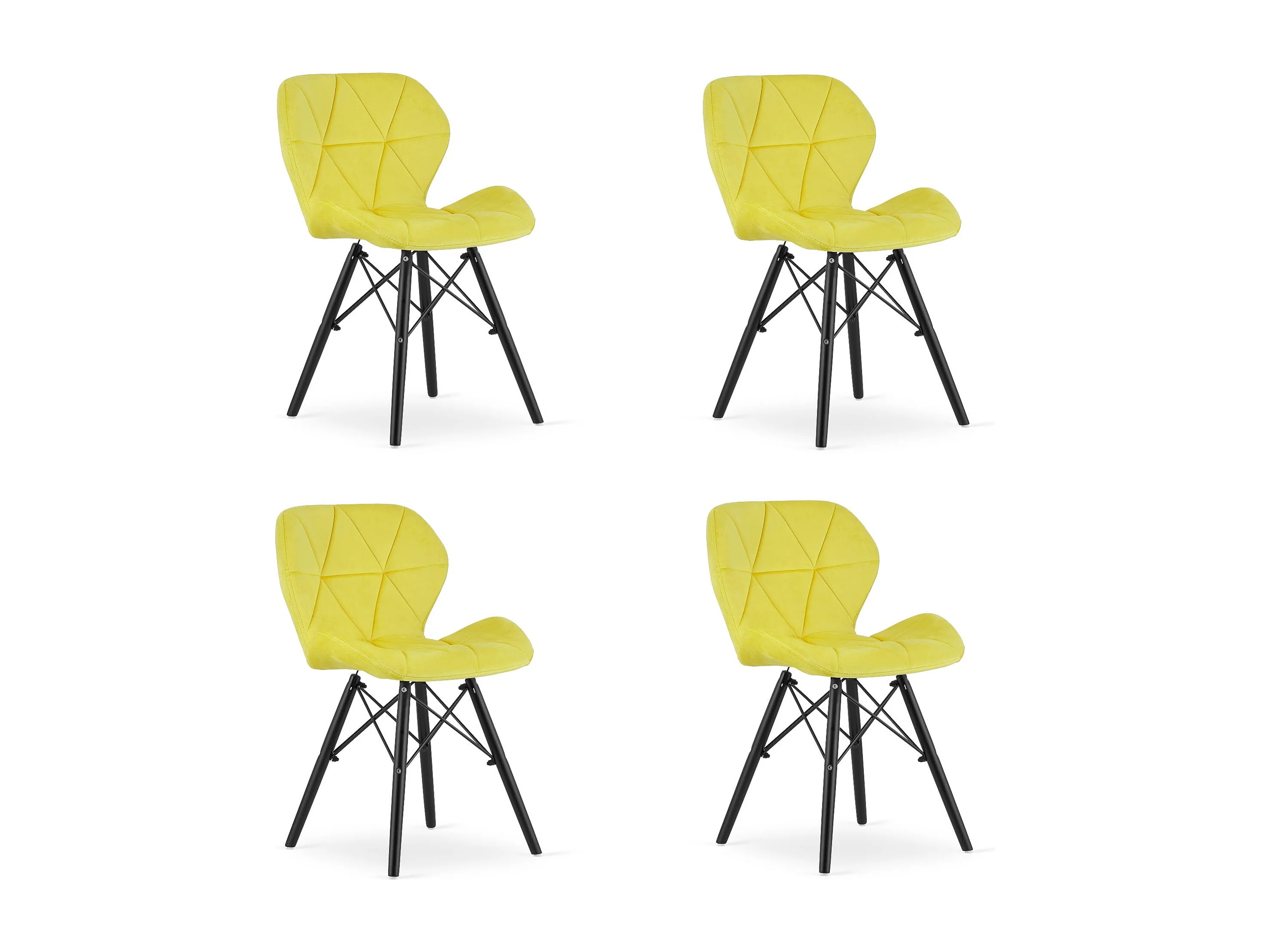 Valora WAKO Chaise en velours jaune pieds noirs pour salle à manger x4