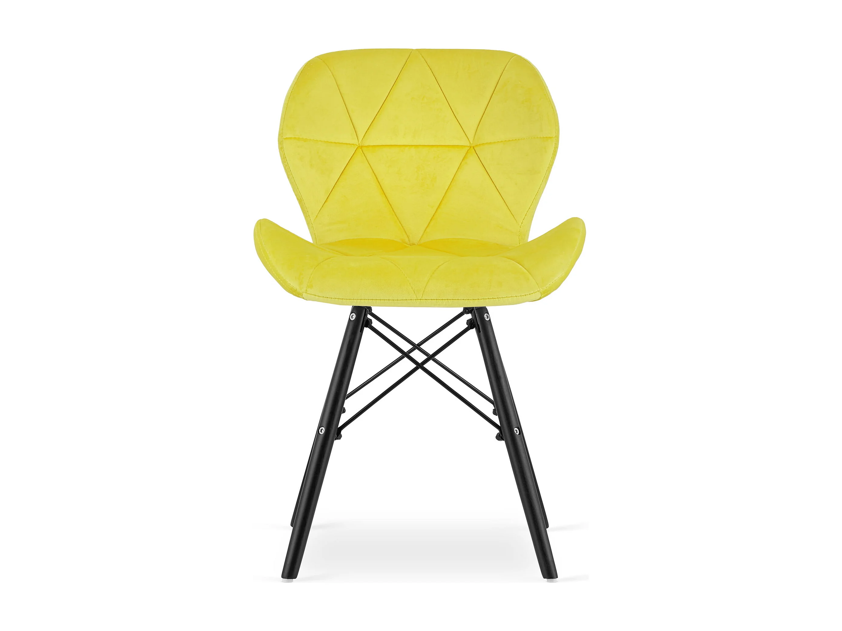 Valora WAKO Fauteuil en velours jaune et noir, pieds noirs, design moderne x3