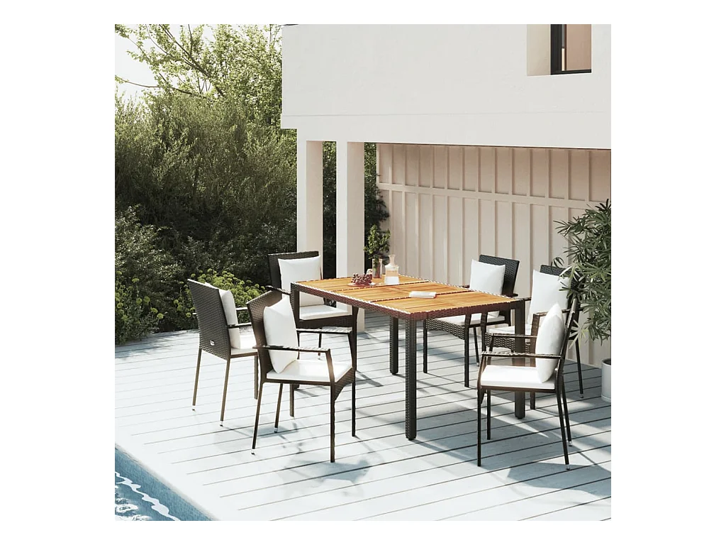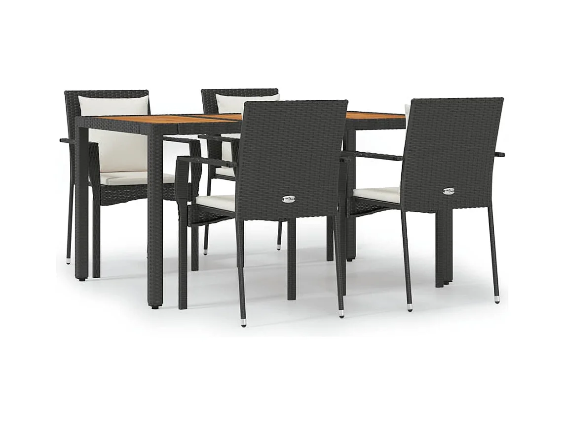 Garden Furniture - Ensemble à manger de jardin 5pcs Noir Poly rotin et acacia