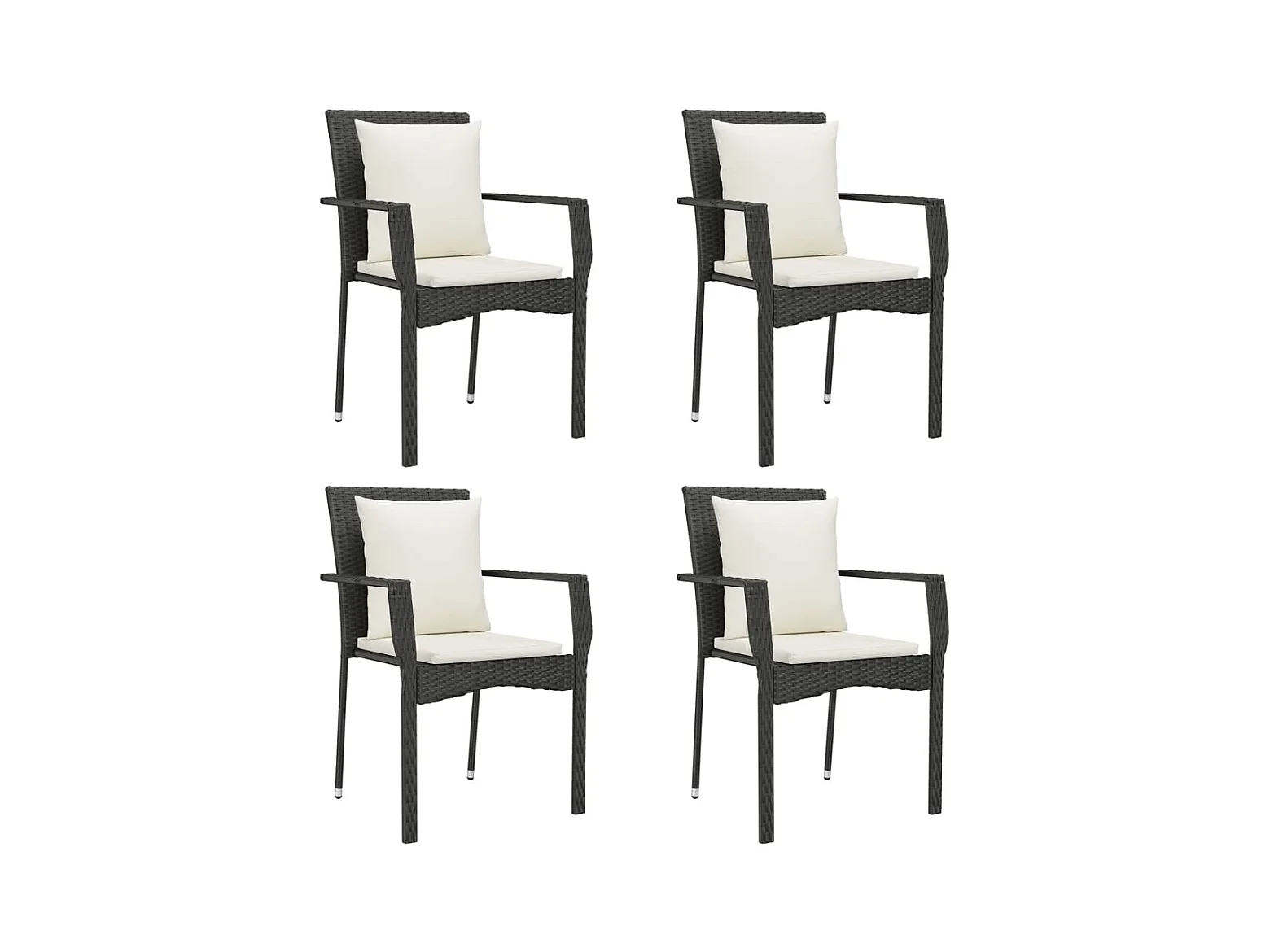 Tyron Ensemble à manger de jardin coussins 5pcs Noir Résine tressée
