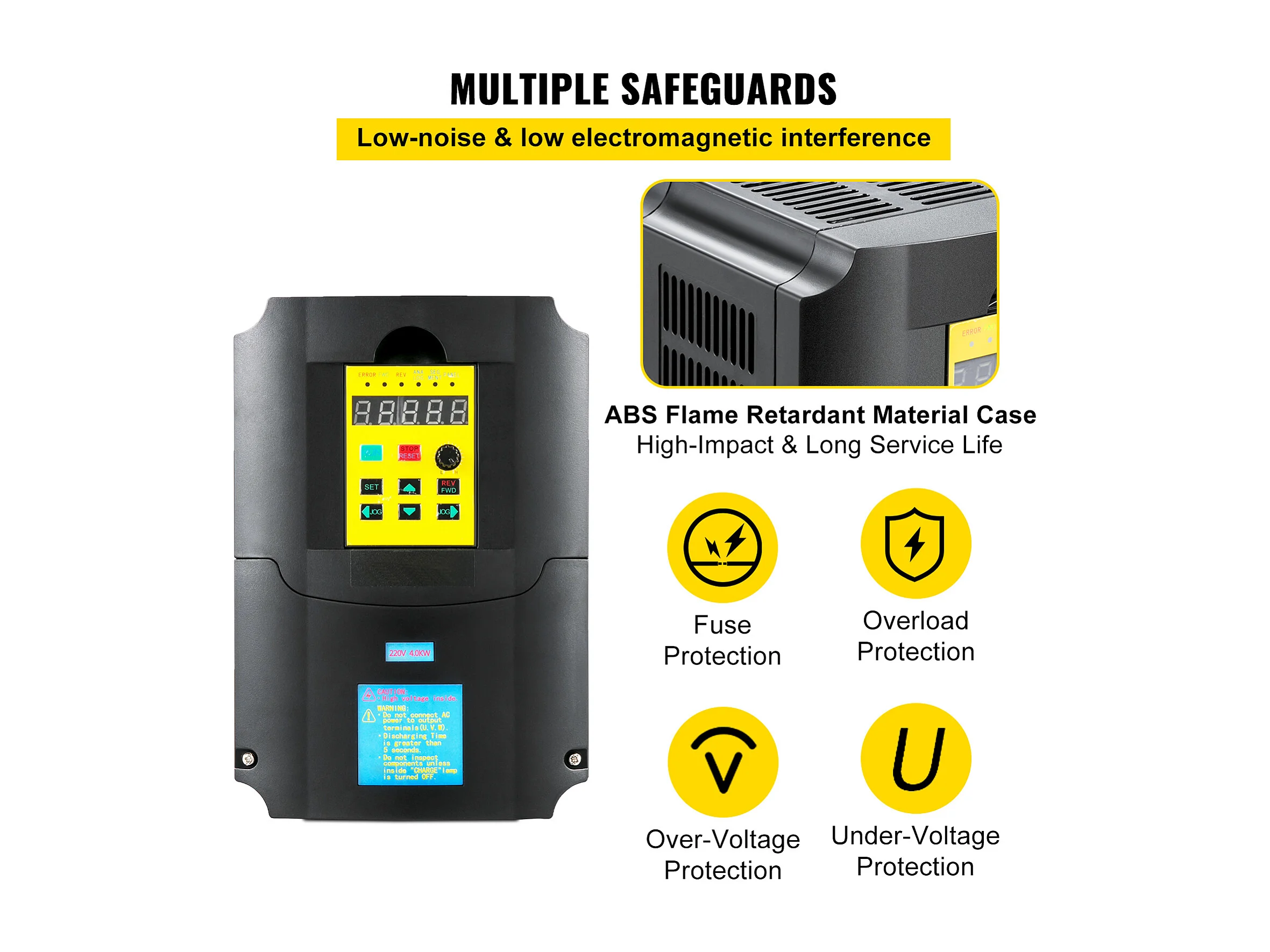 Variateur de Fréquence SucceBuy 3 kW, 4 HP Inverseur Volume d'Air Élevé, Régulateur pour Moteur Machine Contrôle de Vitesse