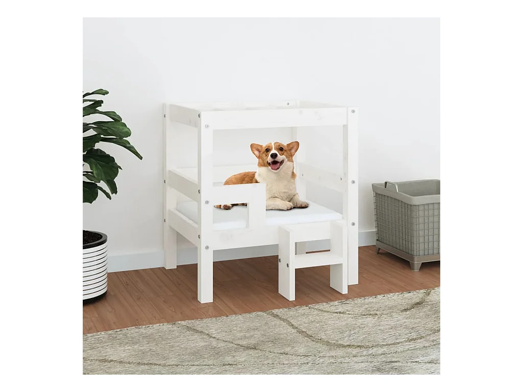 Lit pour chien Blanc 55,5x53,5x60 cm Bois de pin solide