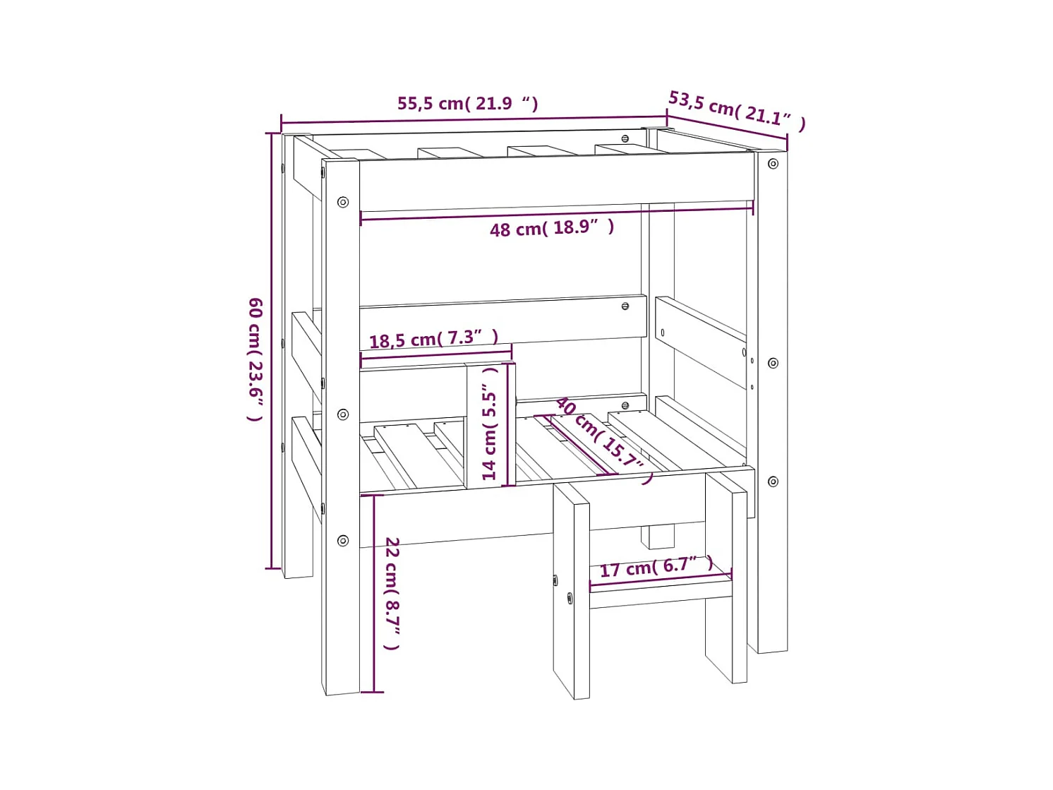 Existe en : Hauteur 70 cm / Longueur (cm) 66 cm / Profondeur / largeur 51 cm