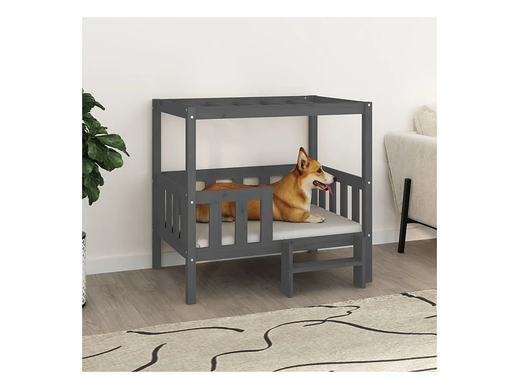 Lit pour chien Gris 81x60x70 cm Bois de pin solide