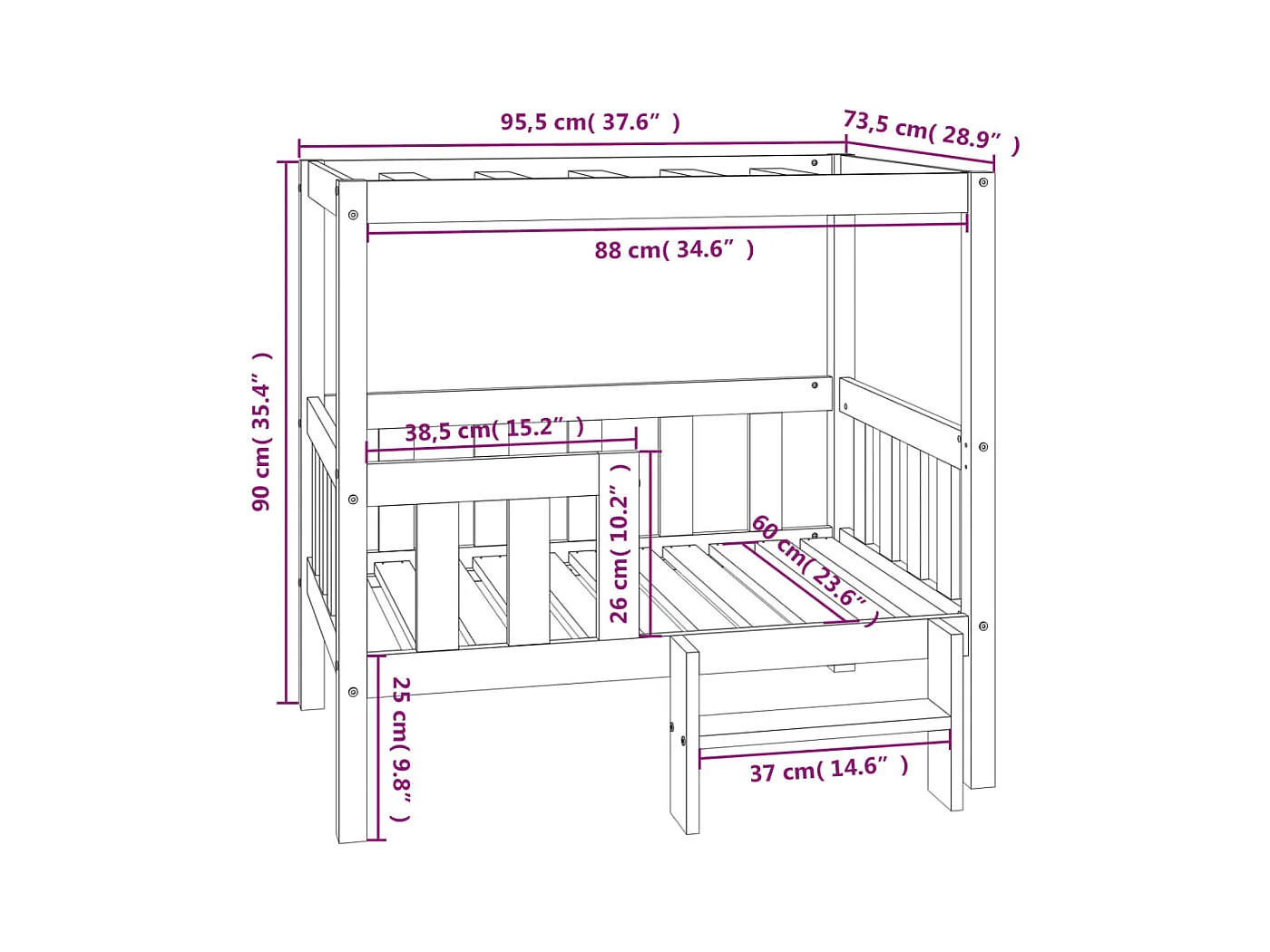 Lit pour chien Gris 95,5x73,5x90 cm Bois de pin solide