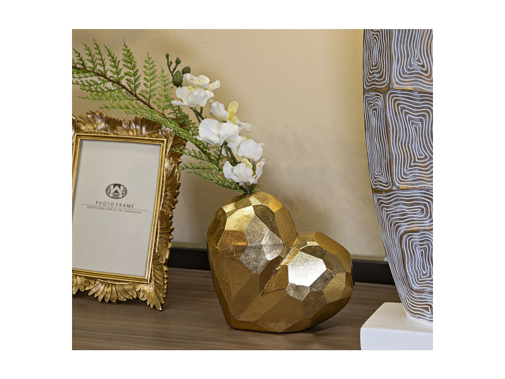 Vase Déco en Résine "Cœur" 18cm Or