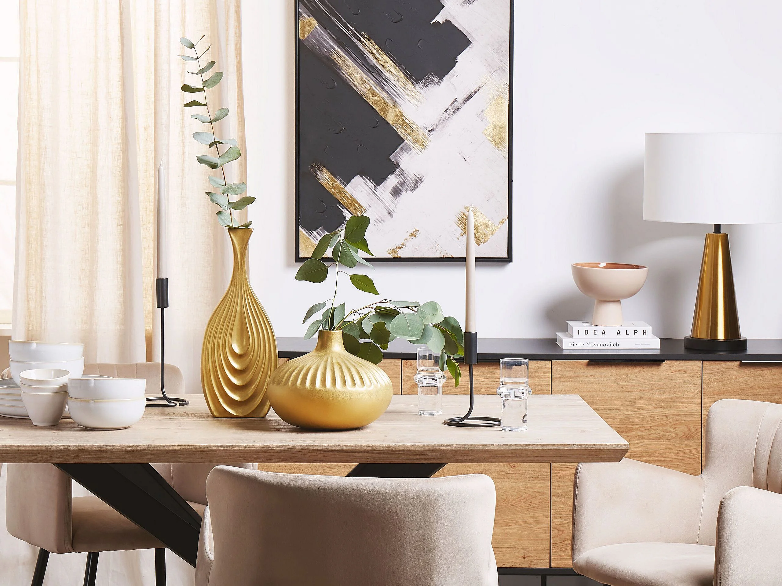 Vase Design en Céramique "Lux" 25cm Blanc & Or
