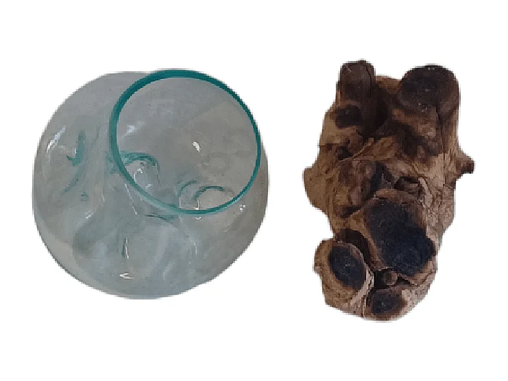Vase Fishbowl Small - Verre fusionné sur teck - Fait main