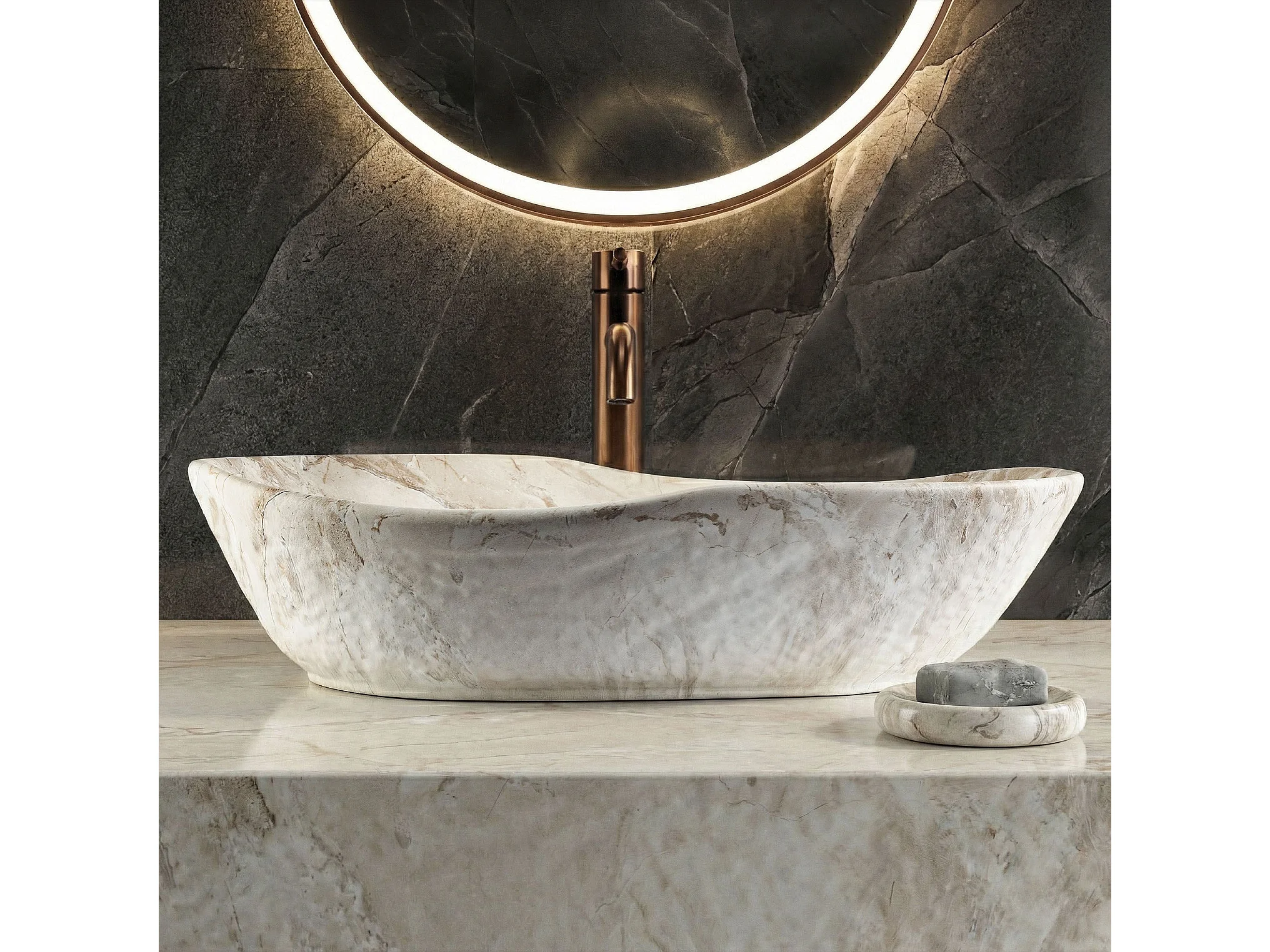 Vasque À Poser Rea Emilia Reno Beige, Stone Imitation