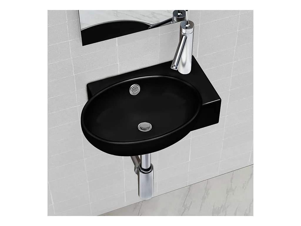 Vasque à trou de trop-plein/robinet céramique pour salle de bain Noir