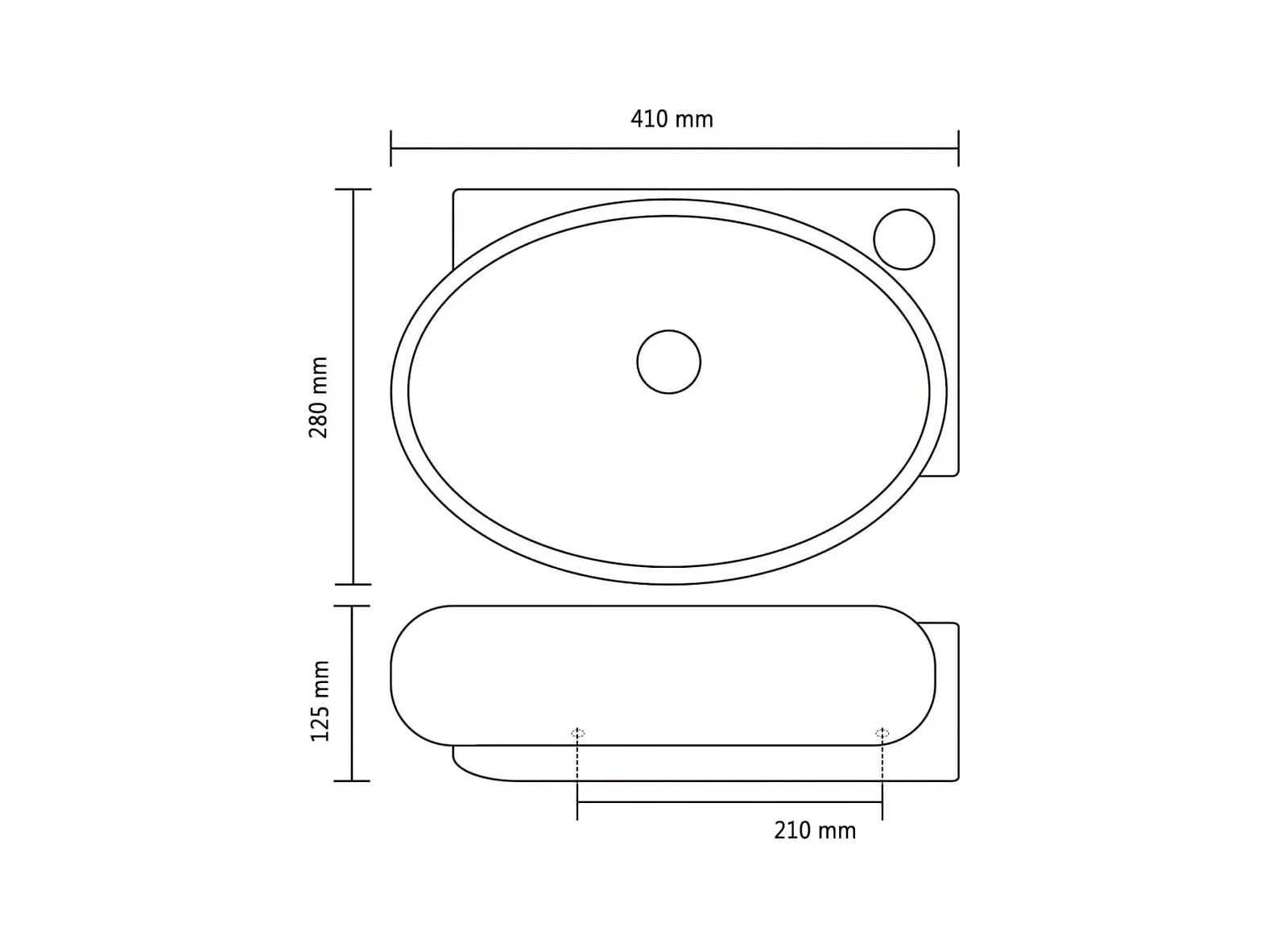 Vasque rond à trou robinet/trop-plein céramique pour salle de bain