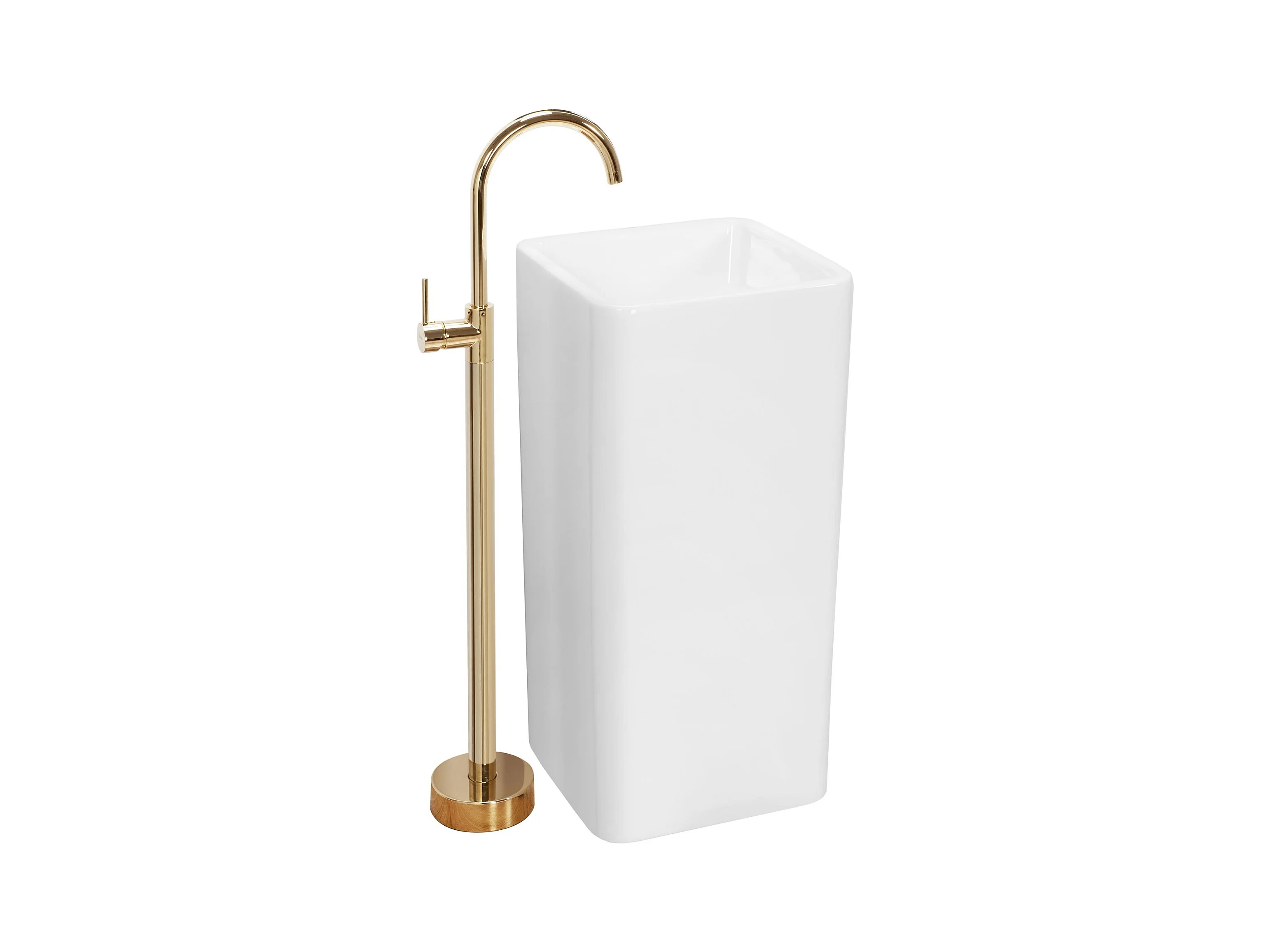 2pcs Robinet de Lavabo Bec Rotation 360°, Mitigeur à Eau Chaude et Froide pour Vasque, Robinet de Salle de Bain avec Barboteur Démotable, Doré