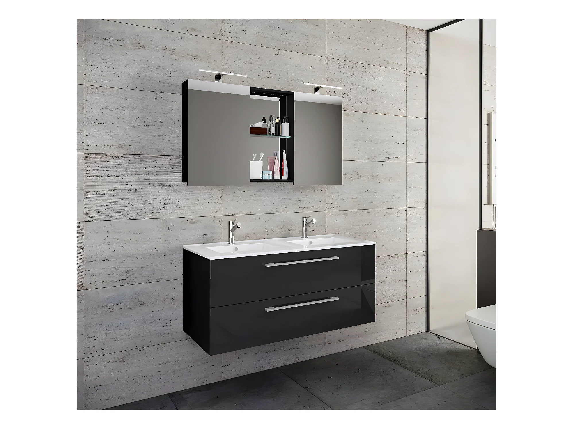 Bathroom furniture washbasin Badinos Black H. 152 x W. 126 x D. 46 cm
