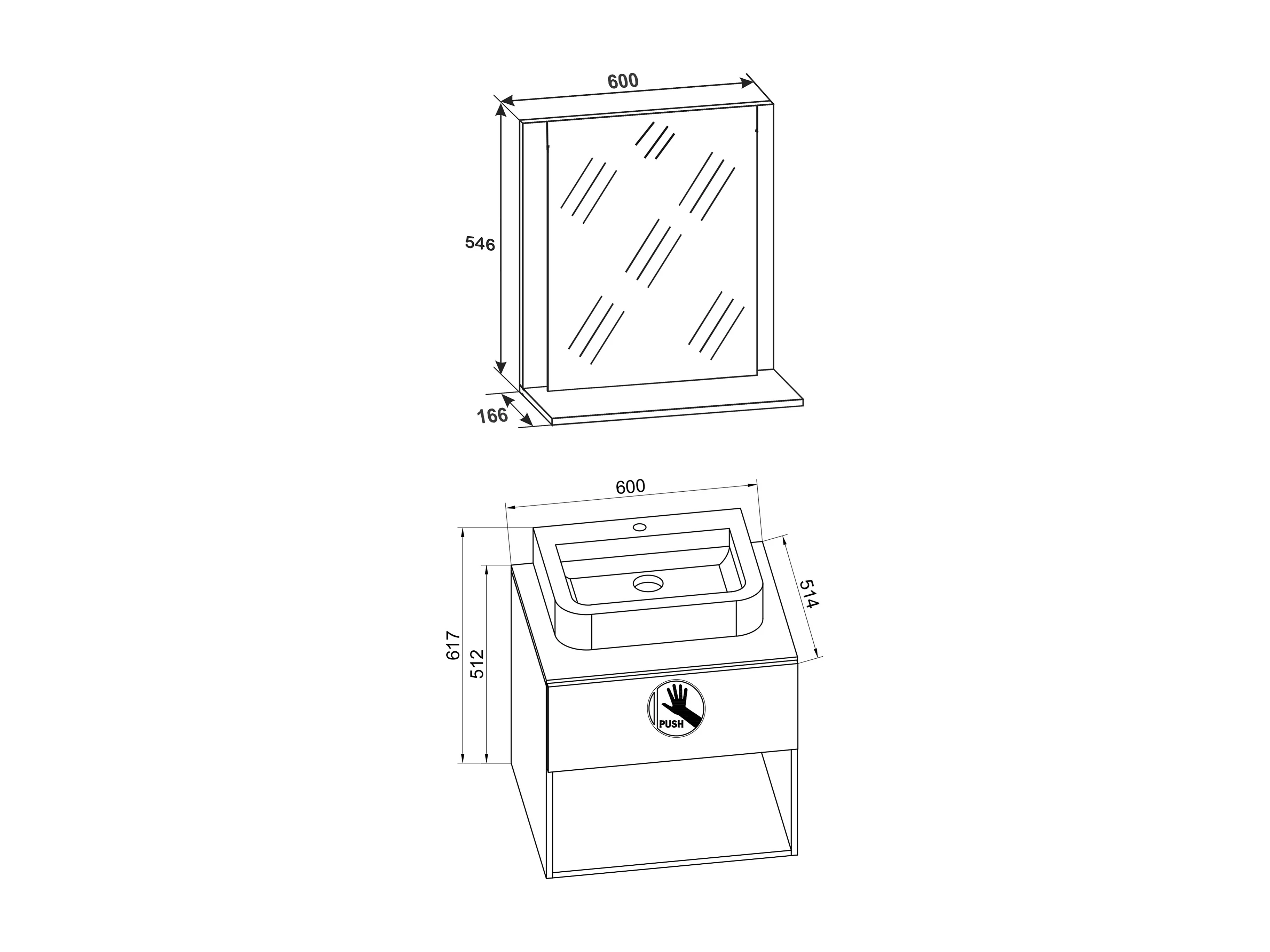 Bathroom furniture washbasin Lendas Anthracite / honey oak H. 107 x W. 60 x D. 52 cm