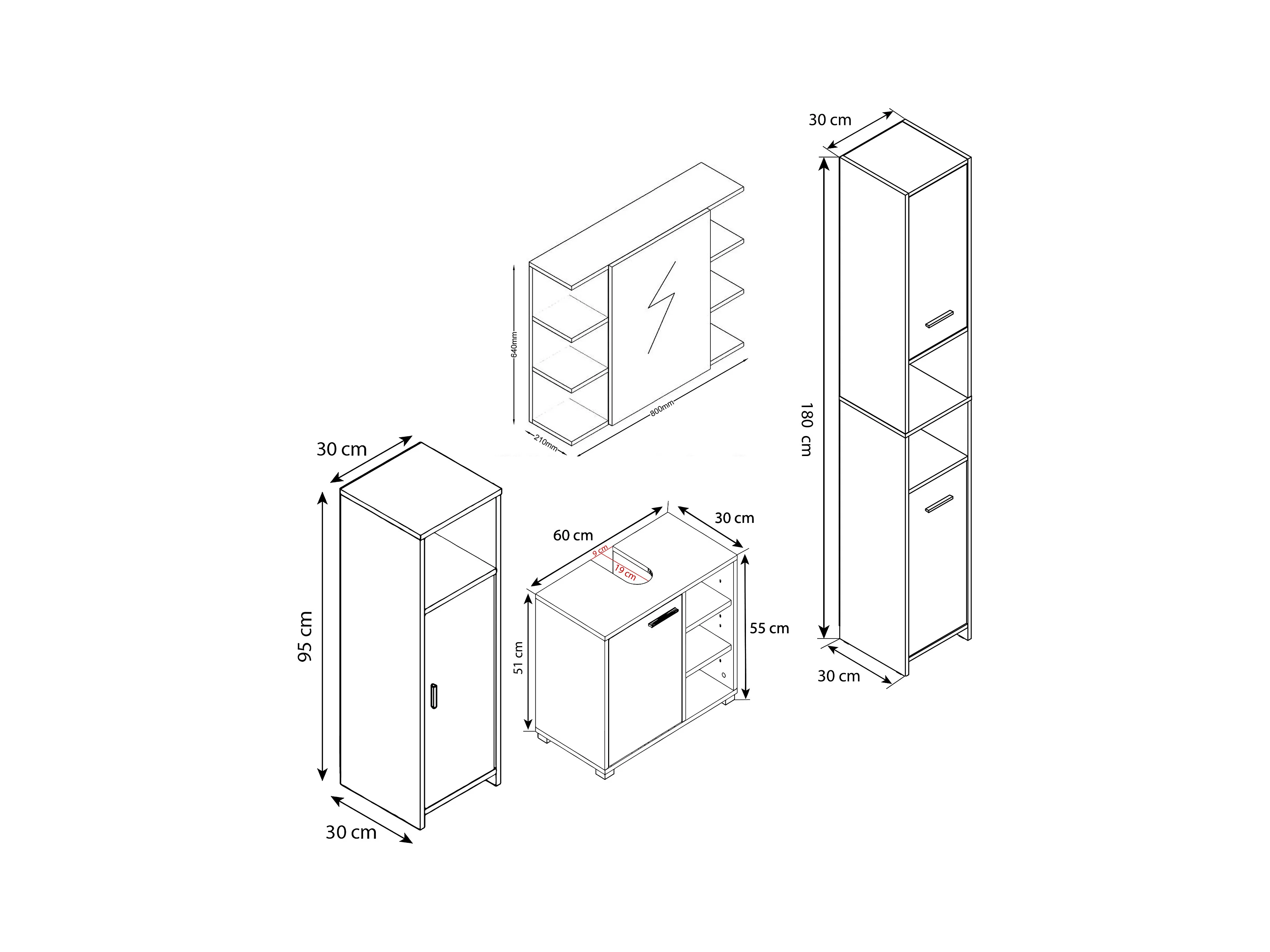 Bathroom furniture sets Zalo Black H. 180 x W. 140 x D. 30 cm