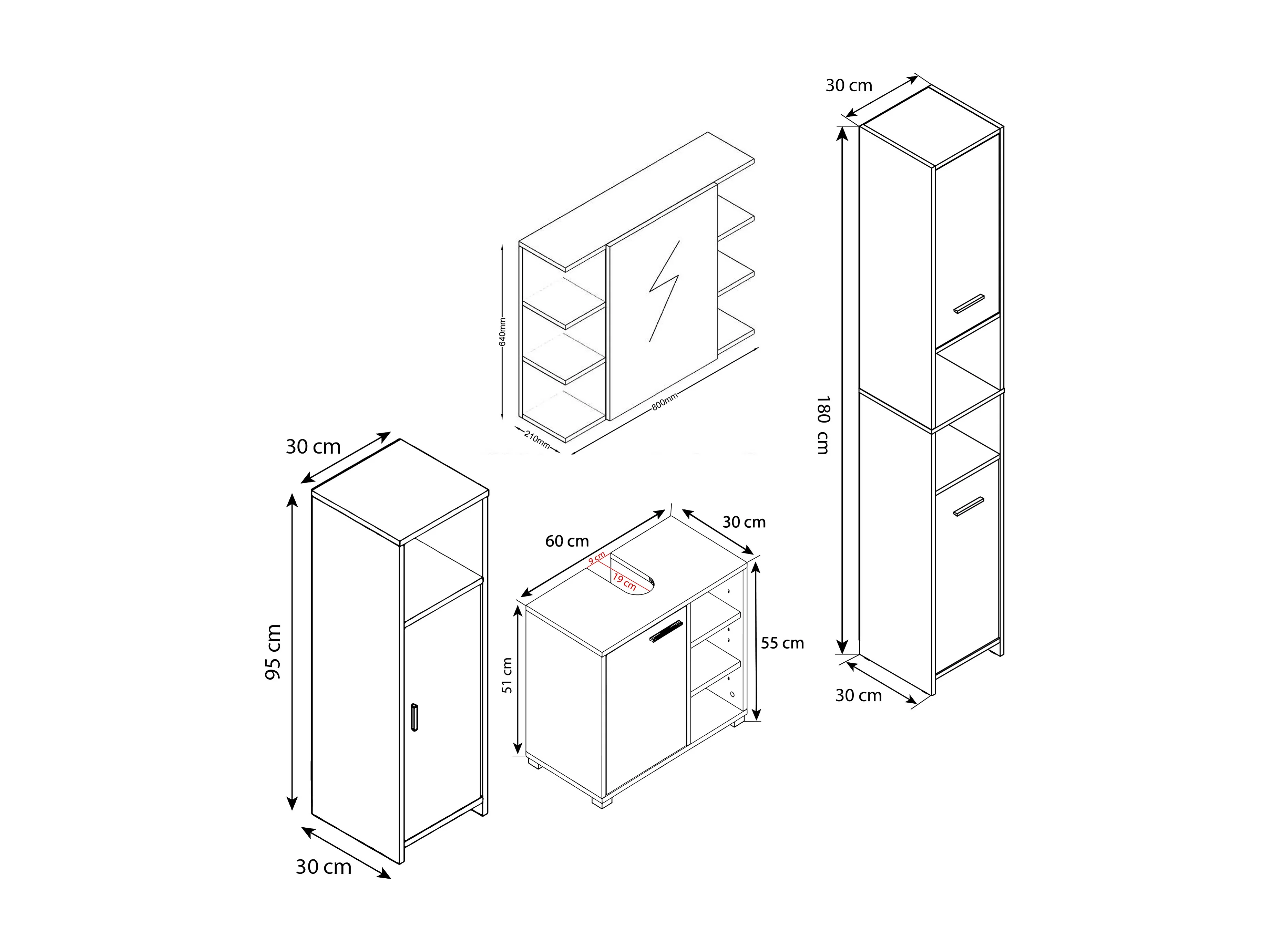 Bathroom furniture sets Zalo White H. 180 x W. 140 x D. 30 cm