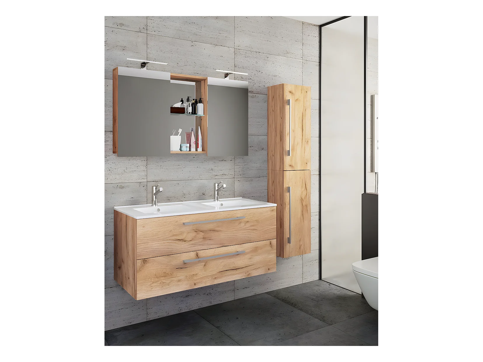 Bathroom furniture washbasin Budasi Honey oak H. 150 x W. 177 x D. 46 cm