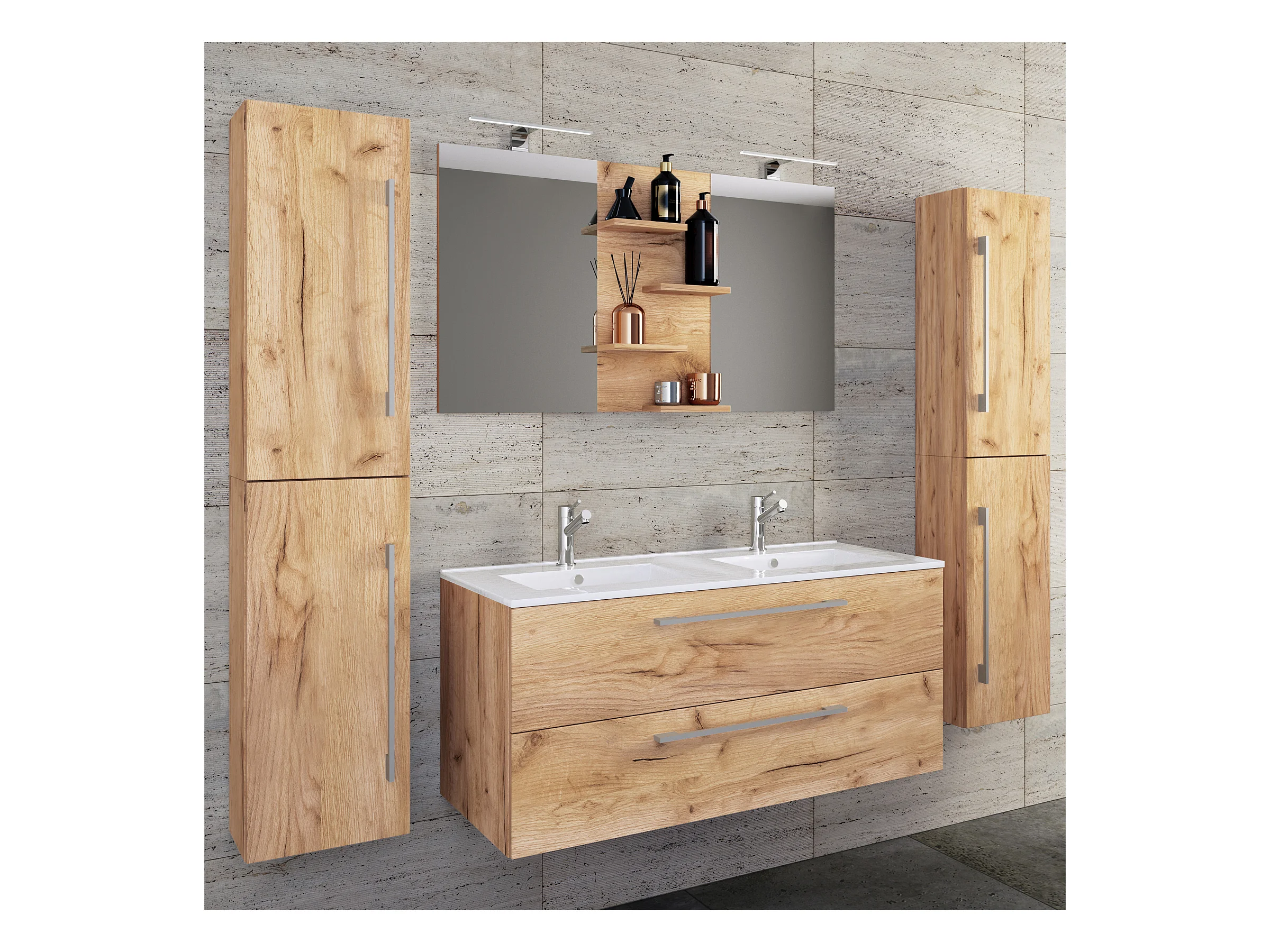 Ensemble meuble salle de bain 4 pièces mélaminé chêne foncé Rune