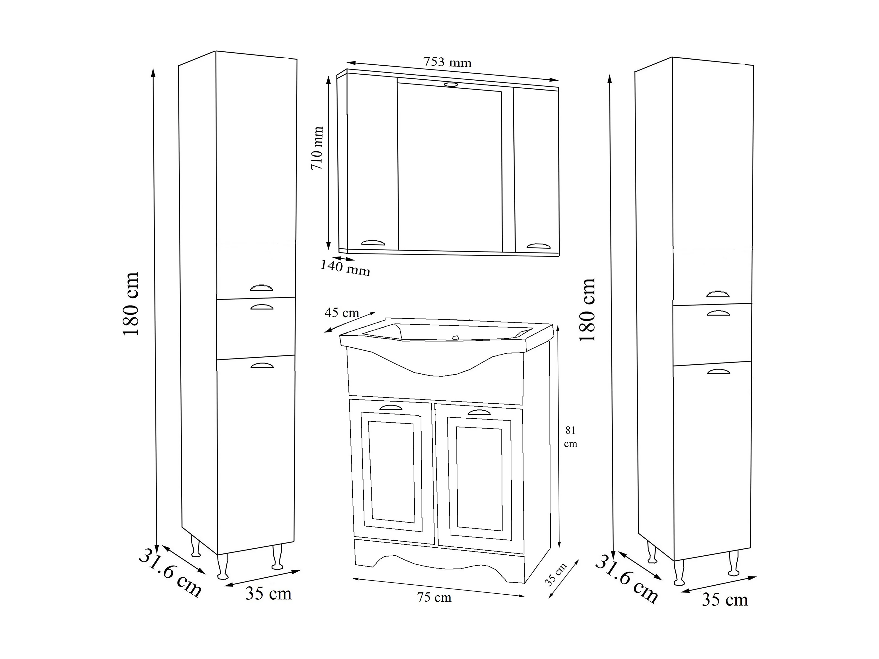 Bathroom furniture washbasin Casalo White H. 180 x W. 140 x D. 46 cm