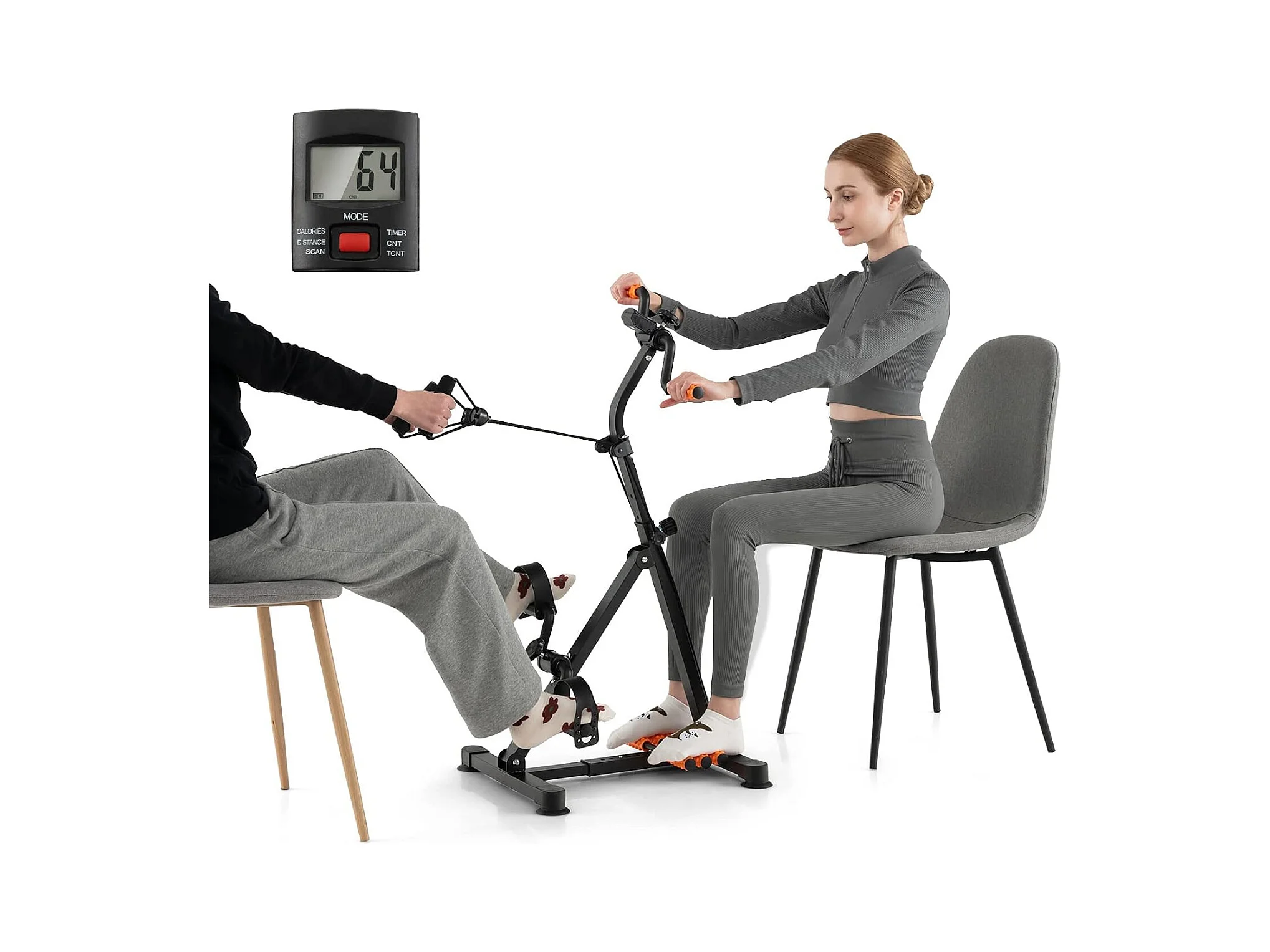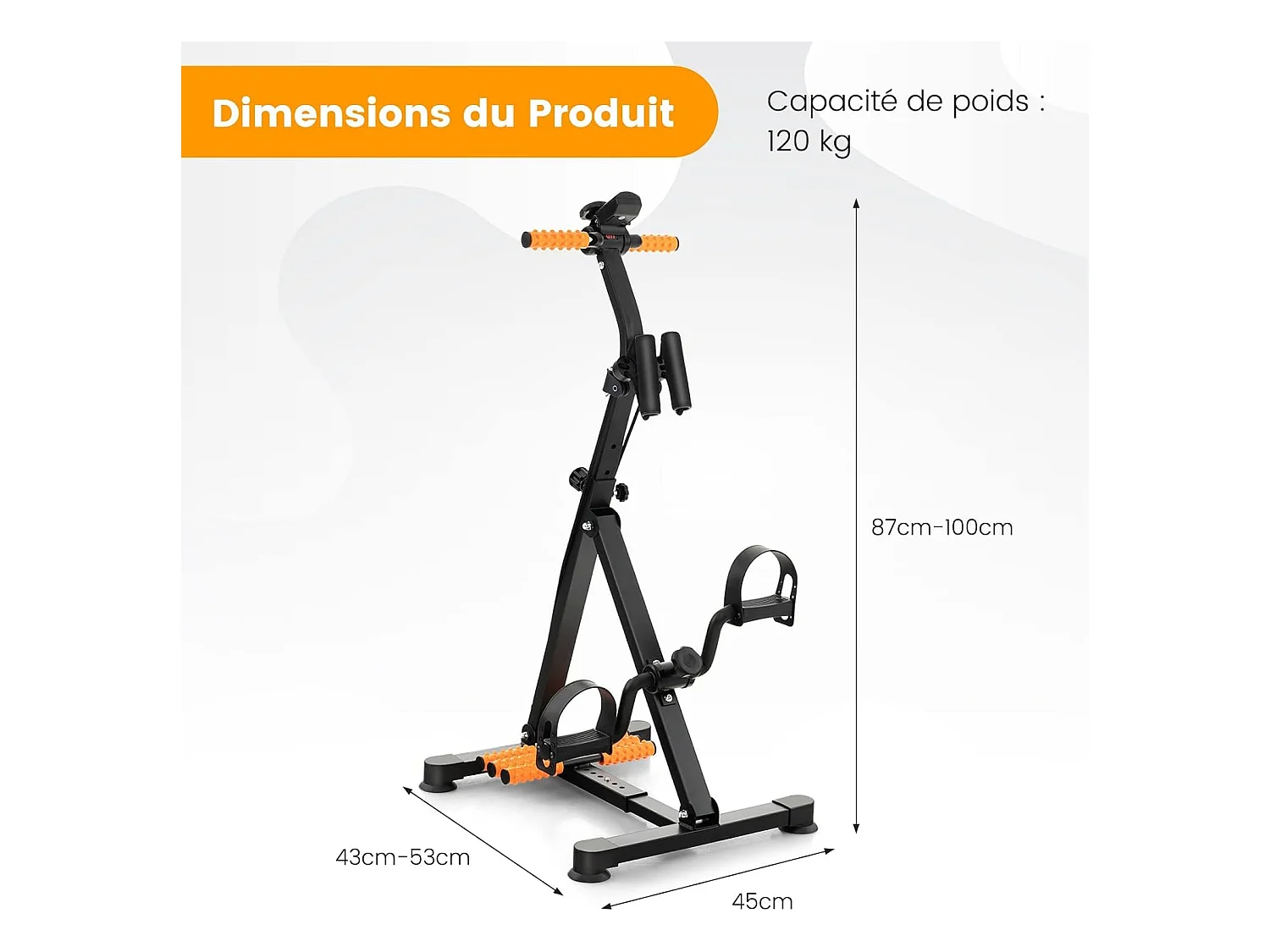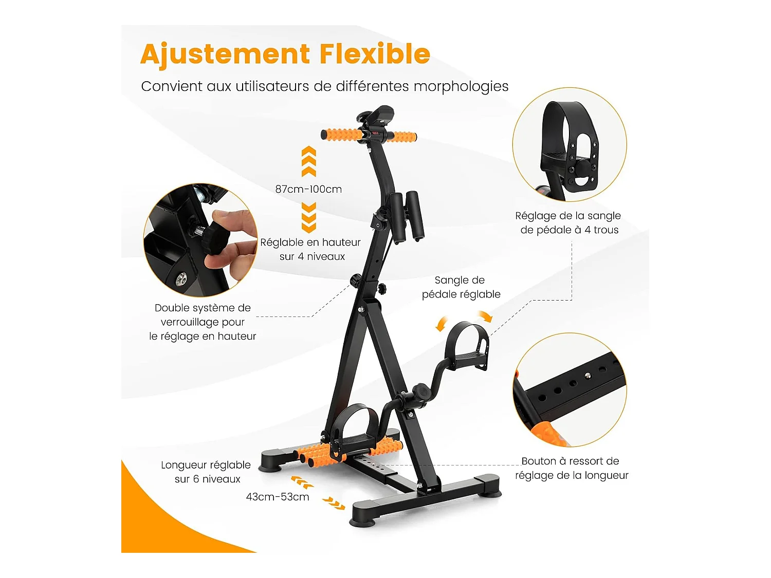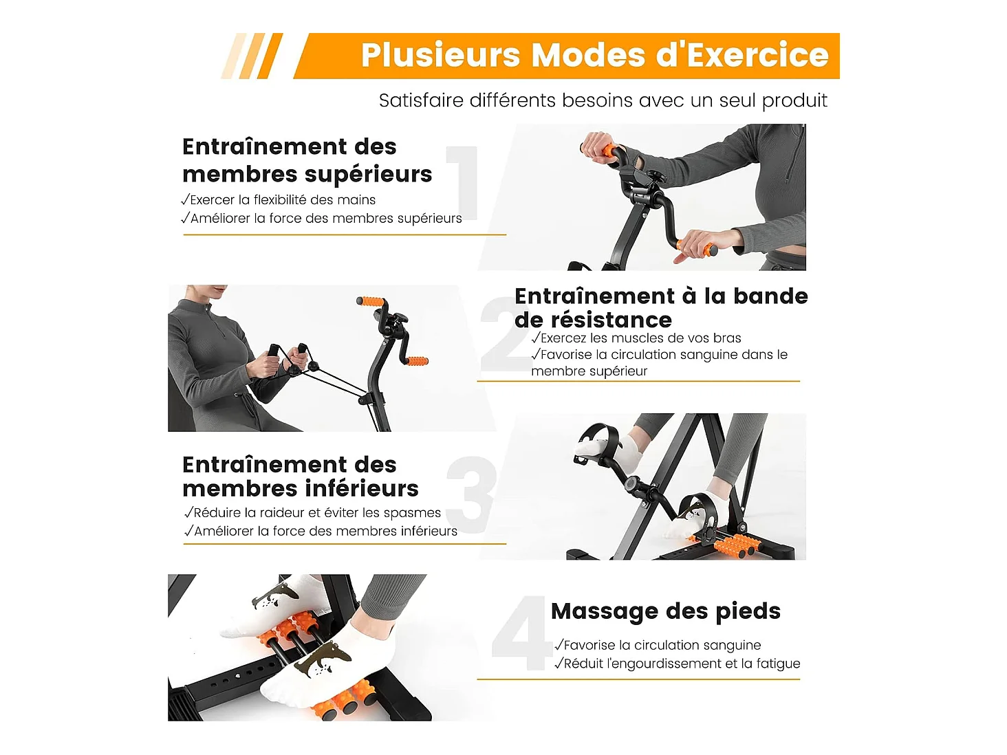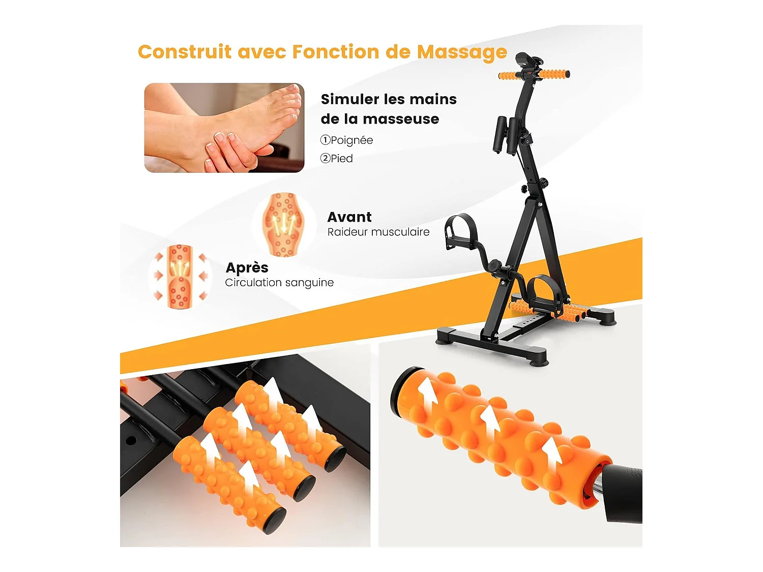 Vélo Pédalier Jambes Hauteur,Longueur Résistance Ajustables Fonction D'étirement avec Rouleaux de Massage,Ecran LCD