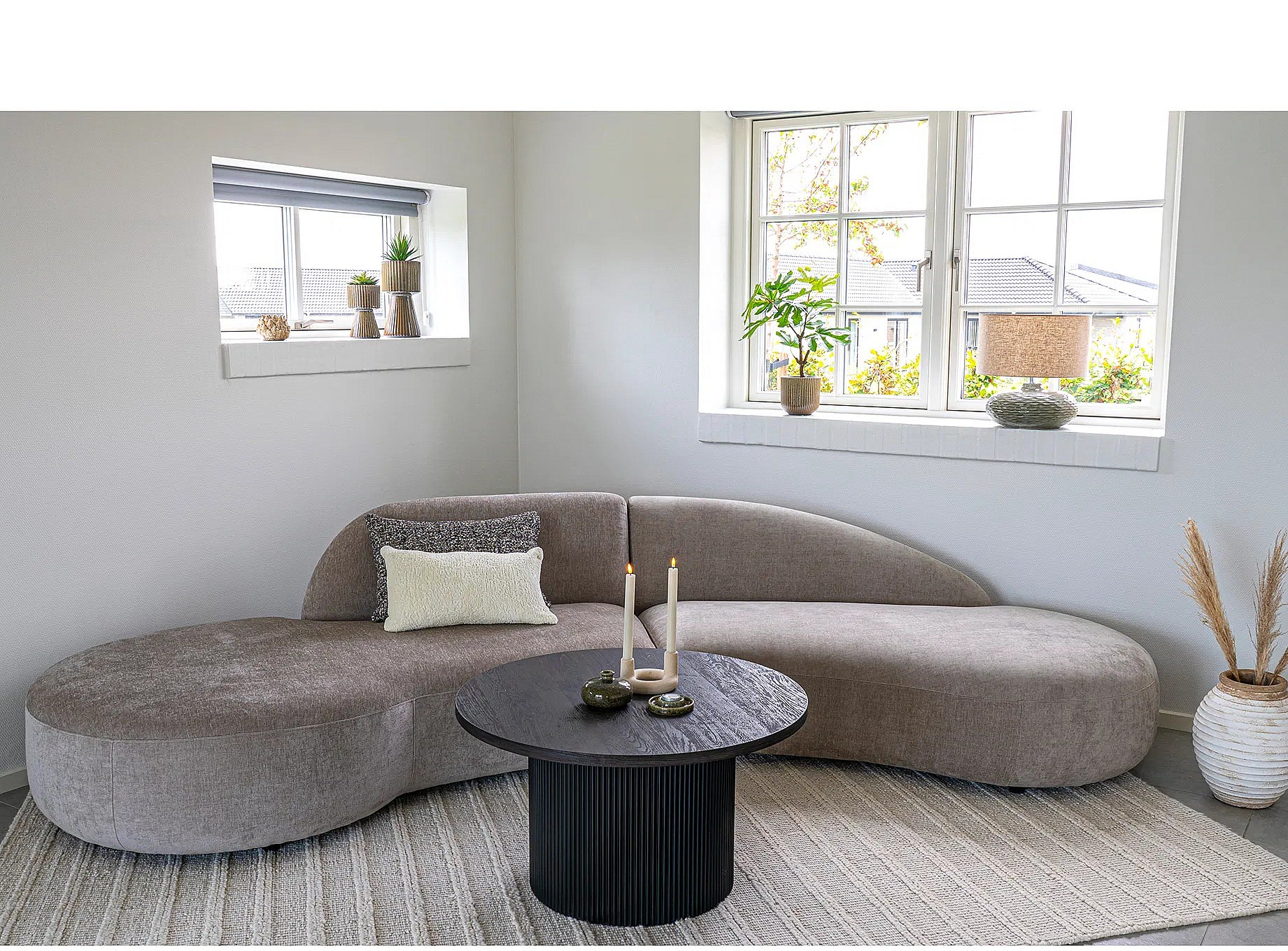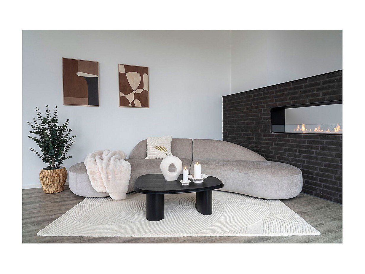 Canapé d’angle 3 places VENICE – Tissu chenille beige & 2 coussins inclus
