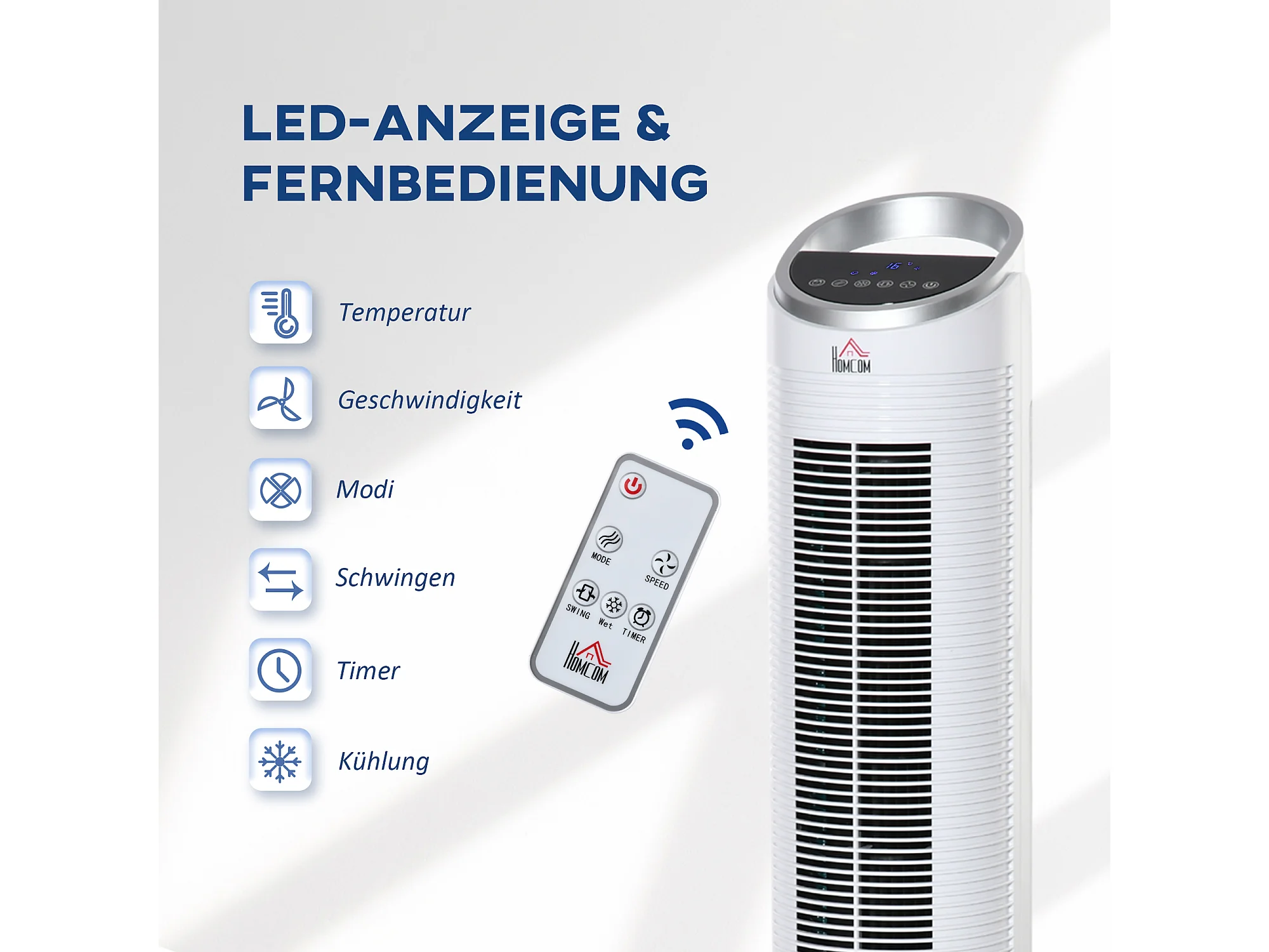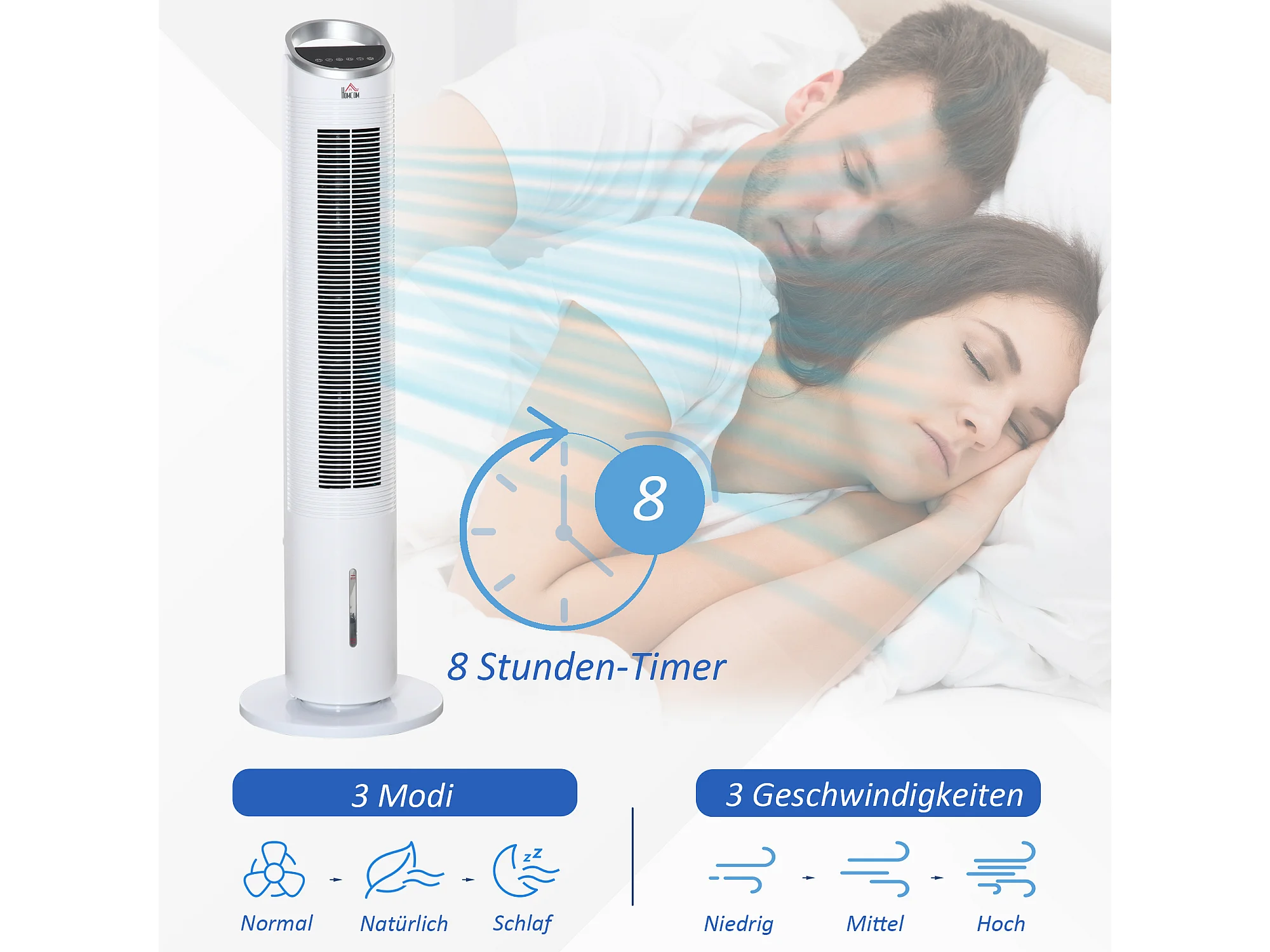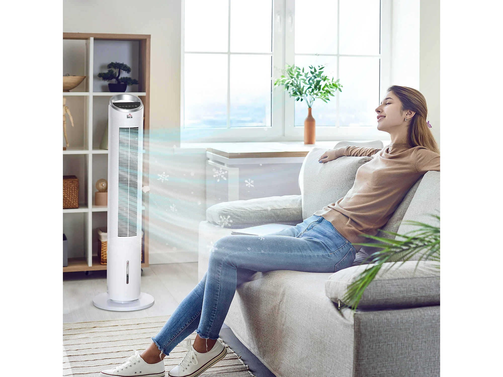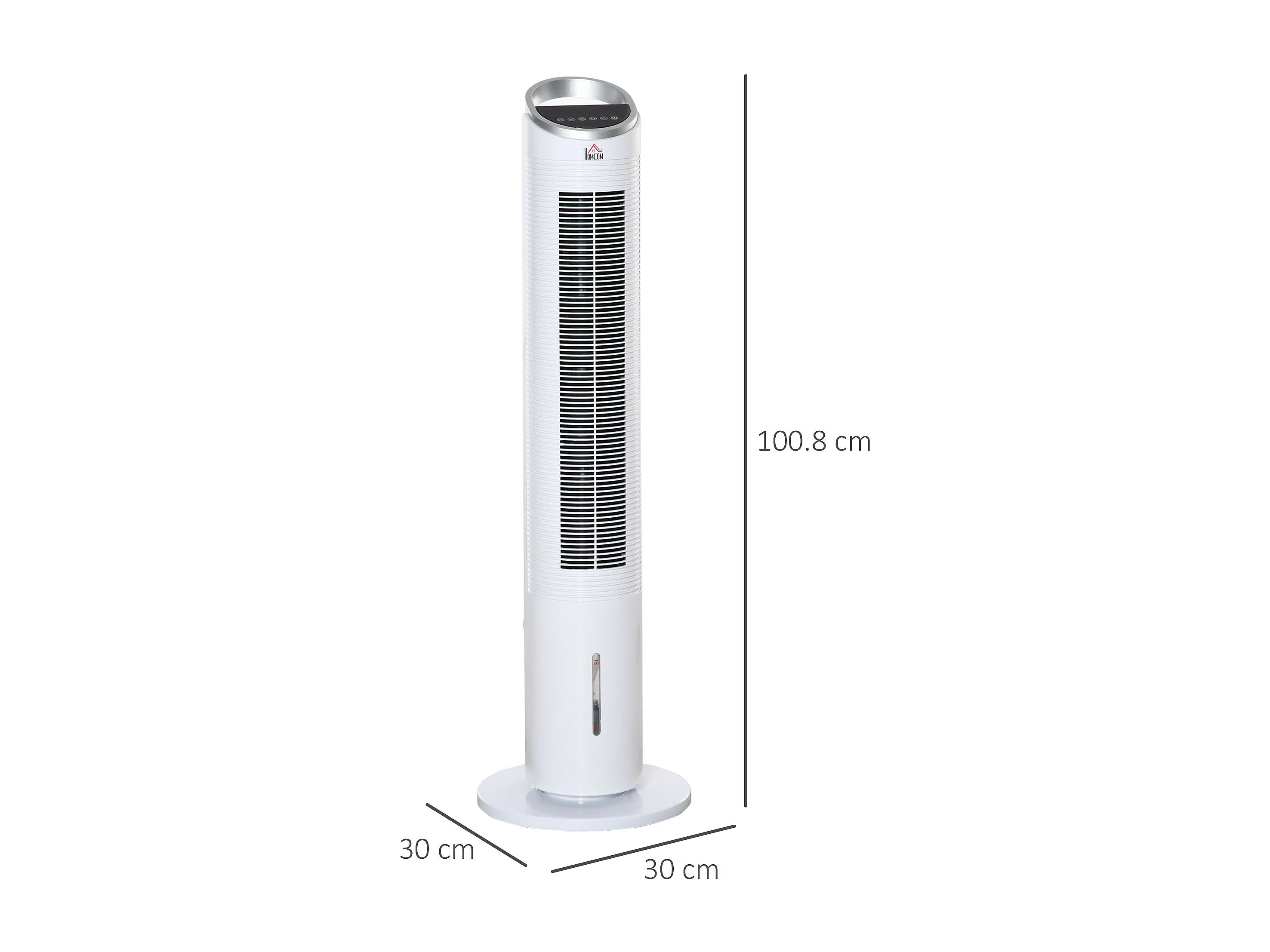 Ventilateur à tour avec fonction de brumisation, 60W, 3 modes, télécommande, réservoir d'eau 2L, oscillation 52°, pour pièces jusqu'à 20㎡ (Ø30x100.8Hcm)