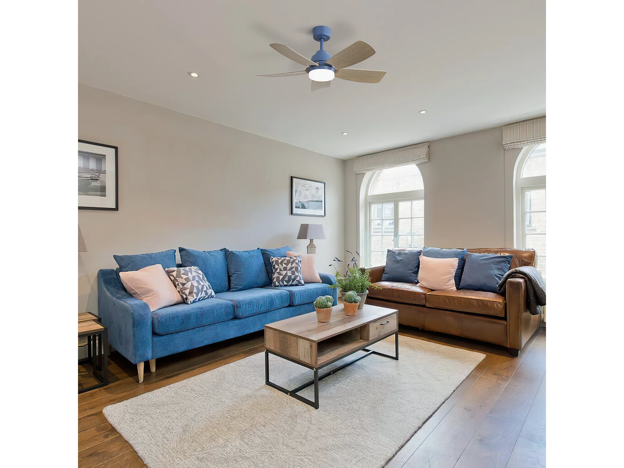 Ventilateur de plafond 106.6cm 5 pales avec LED, 6 vitesses, Moteur DC réversible, bleu