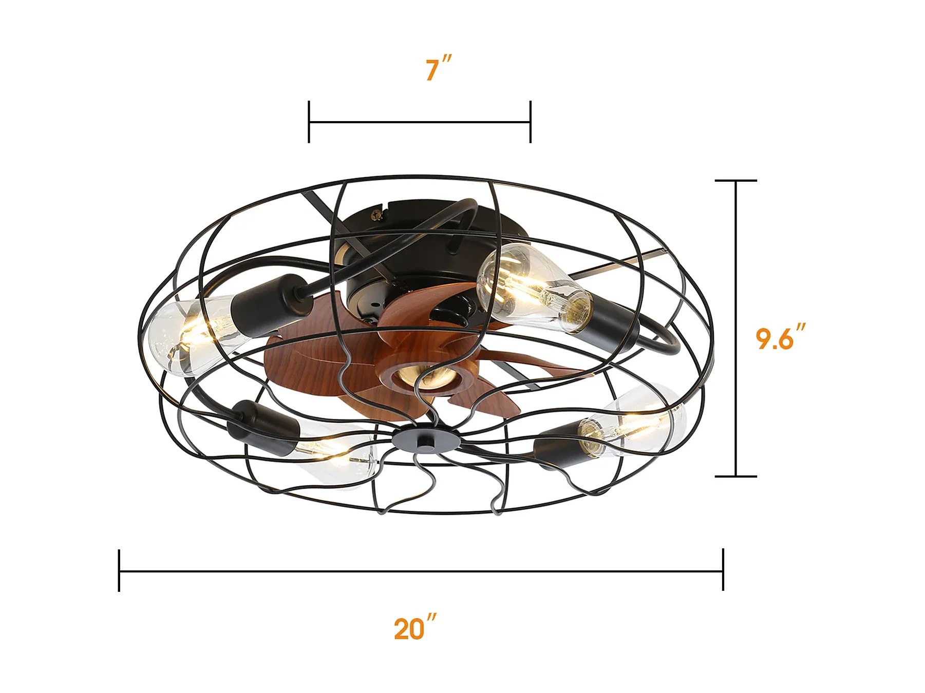 Ventilateur de plafond 20" - Ventilateur de plafond intérieur à 7 pales et ampoule - Télécommande 6 vitesses