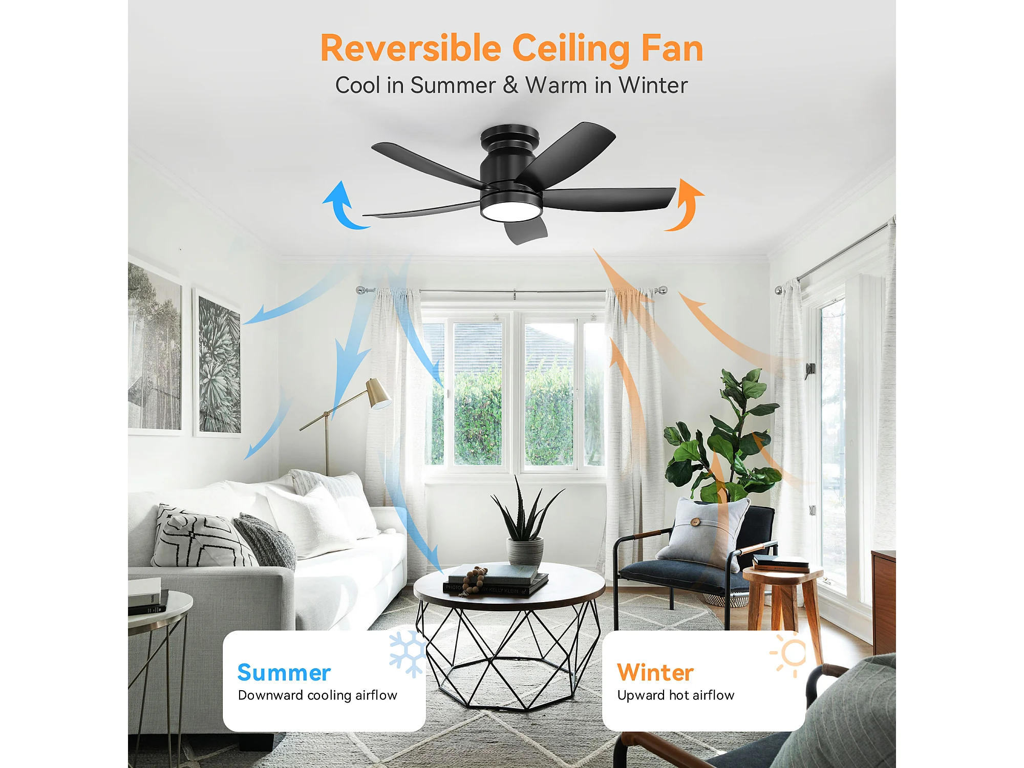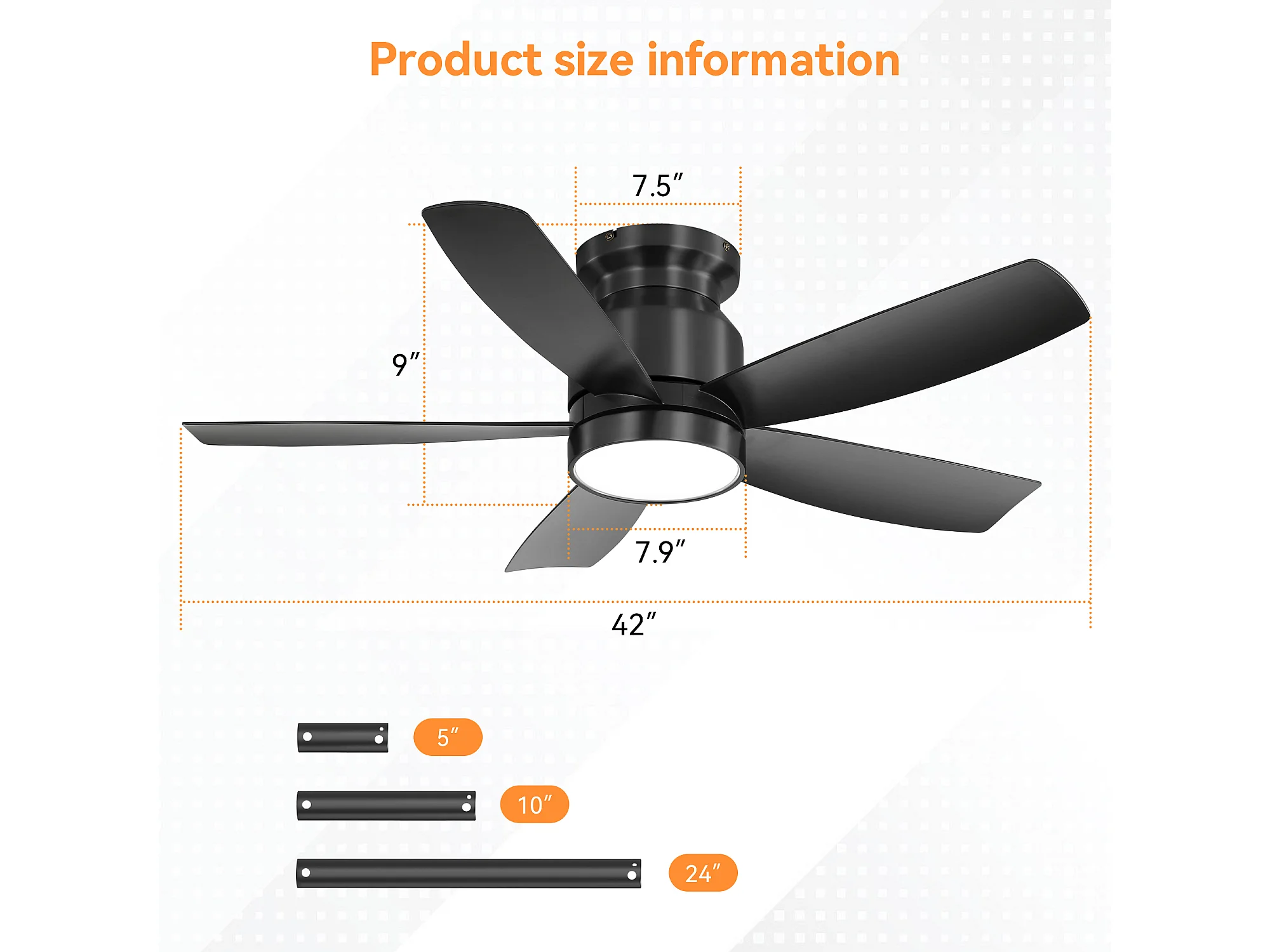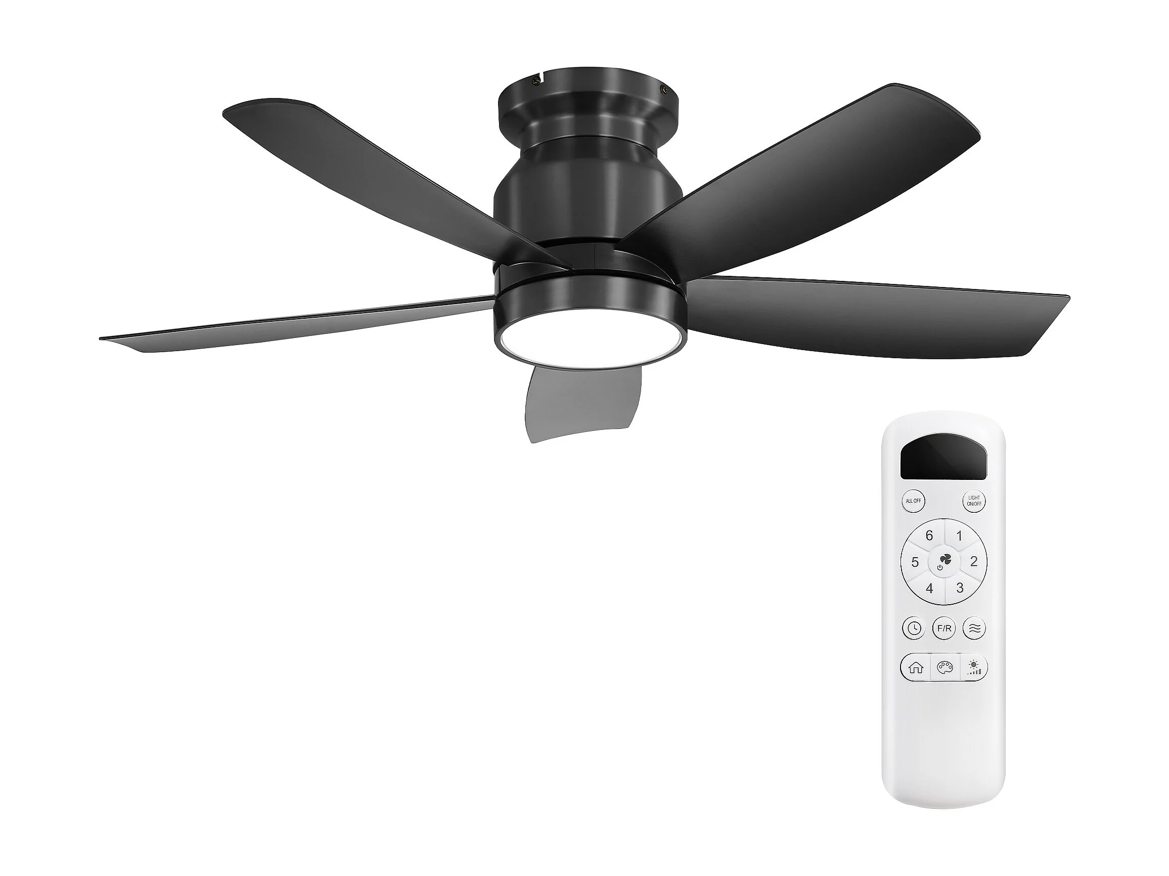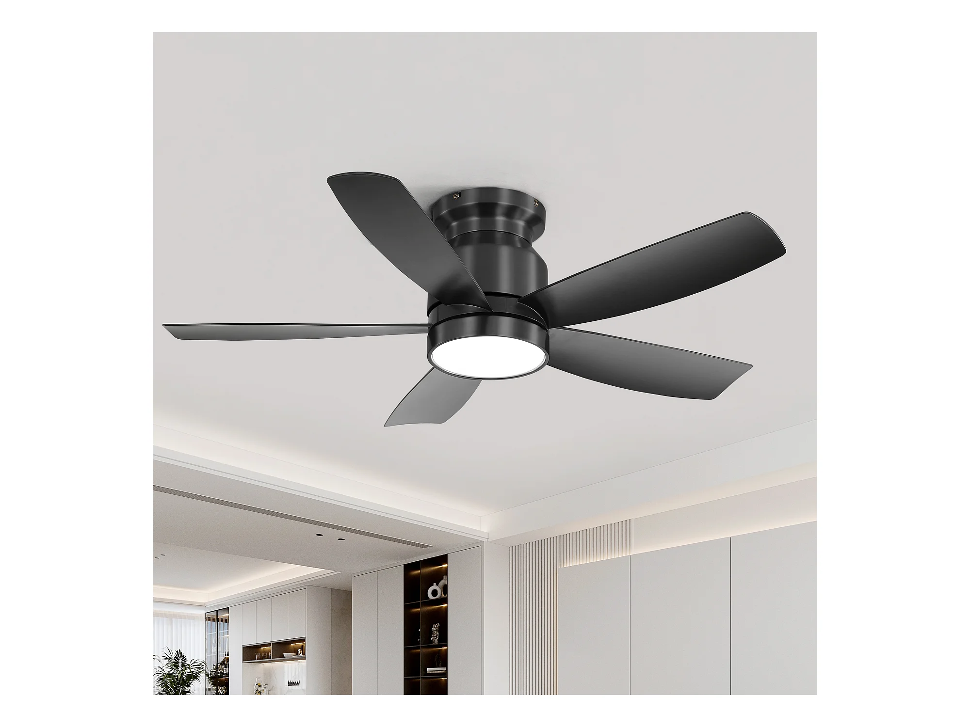 Ventilateur de plafond 42 pouces avec éclairage LED 18W, télécommande, 5 pales ABS, moteur DC réversible, noir (106.68x106.68x23.11 cm)