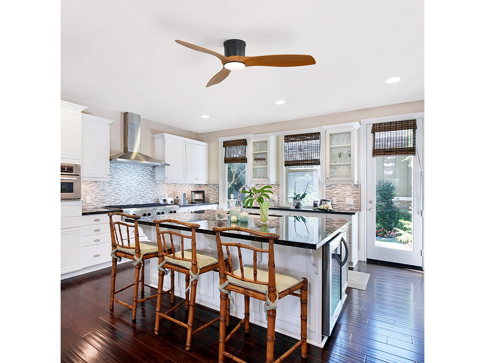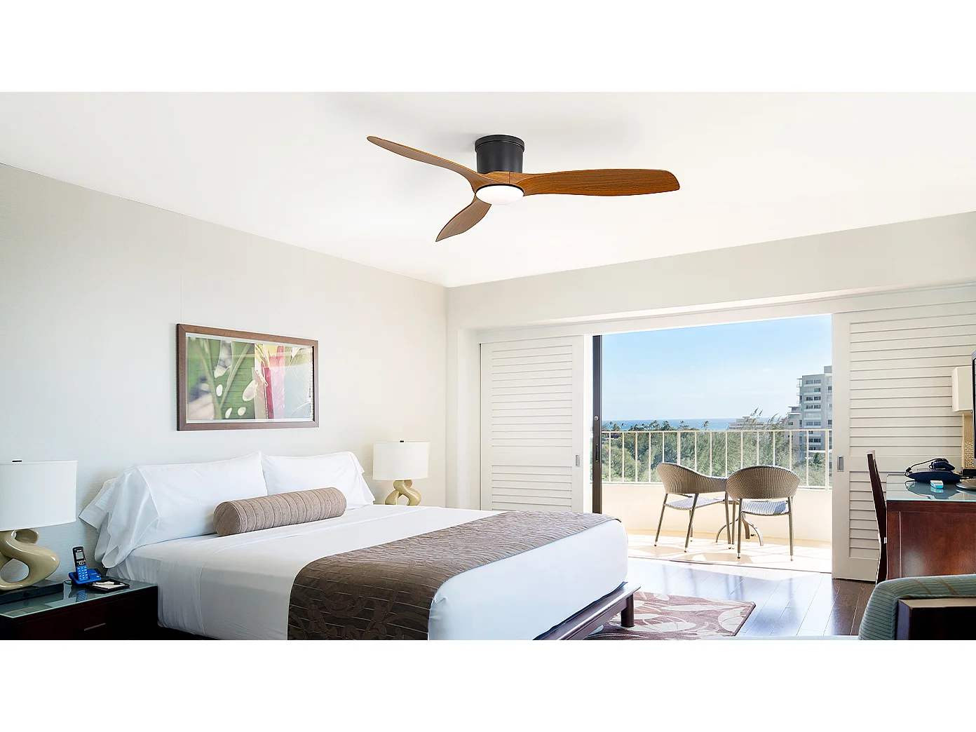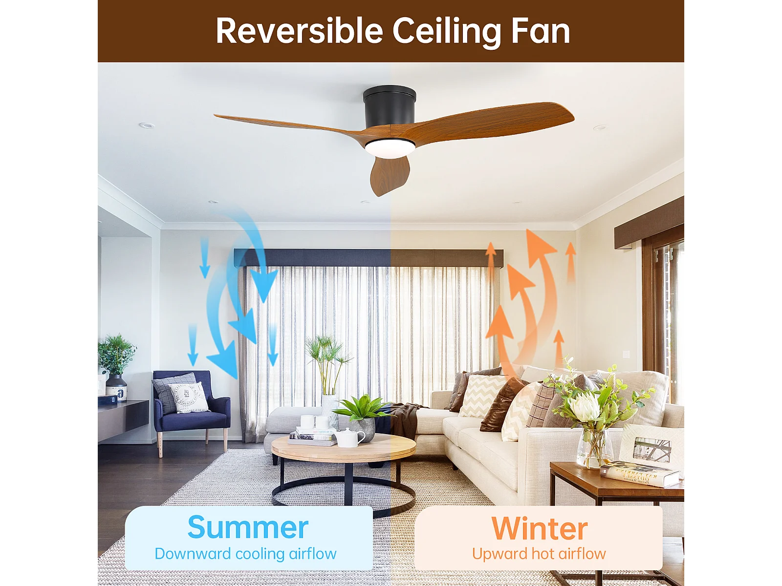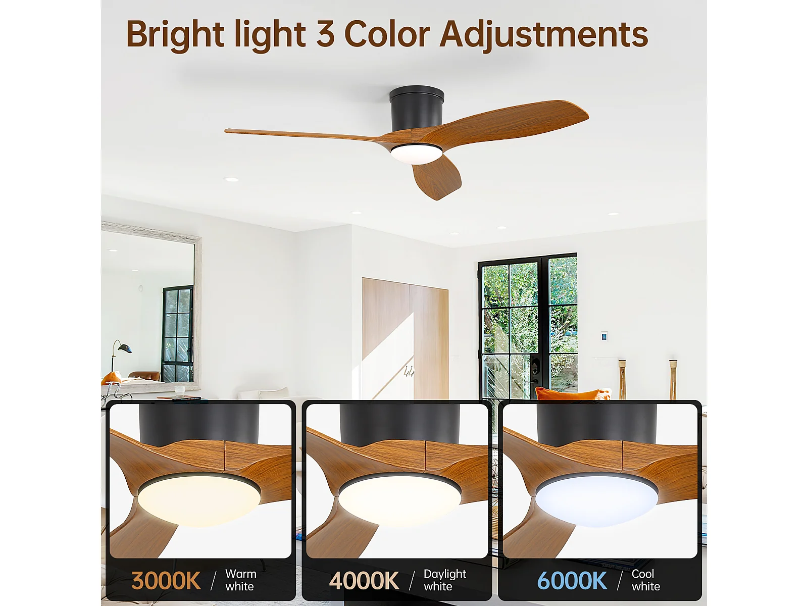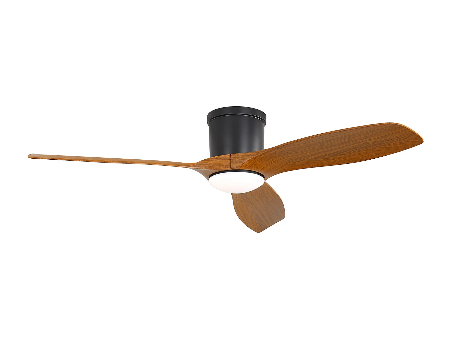 Ventilateur de plafond 52 pouces avec télécommande, 3 pales ABS, LED 18W dimmable, 3 couleurs, fonction réversible, noir (132x132x22.86 cm)