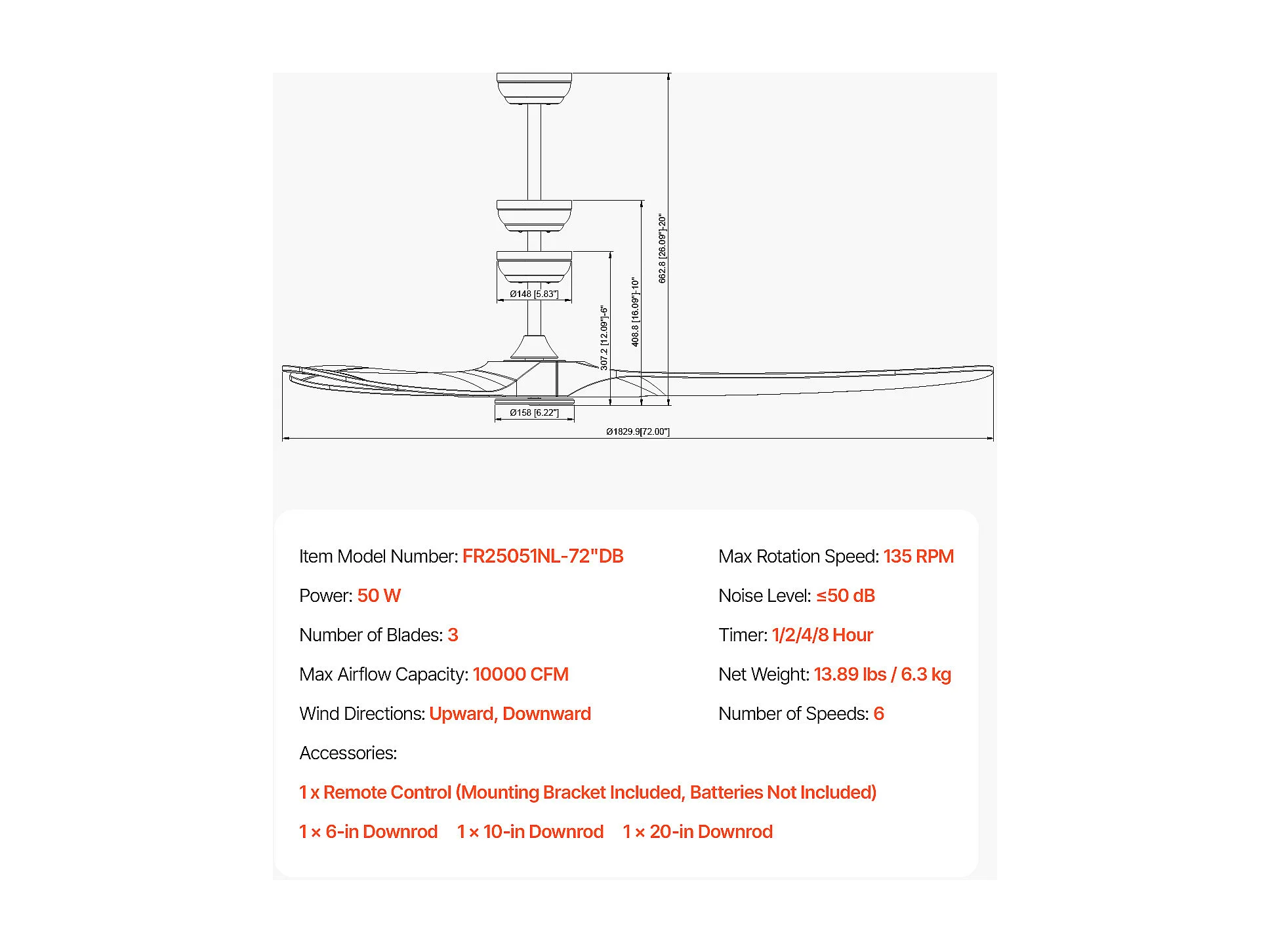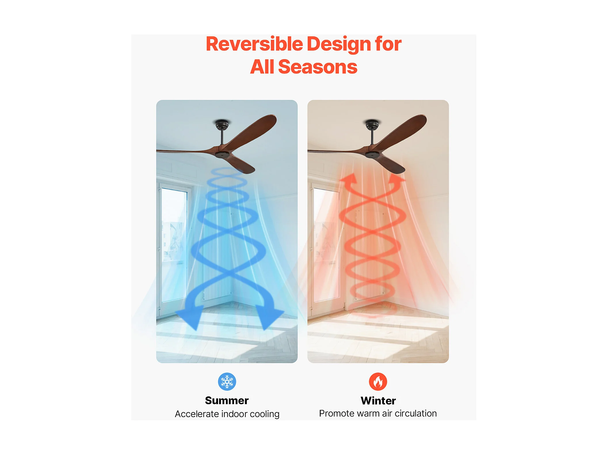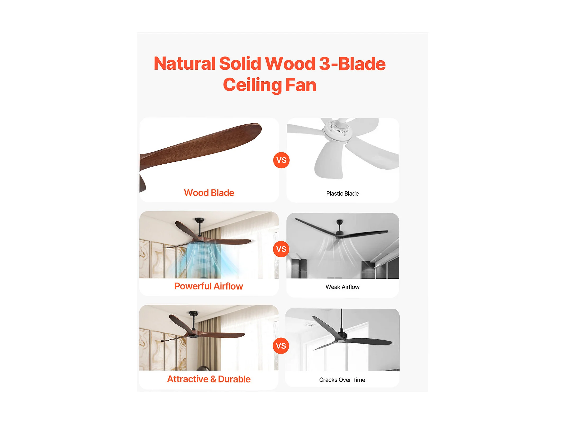 Ventilateur de Plafond à Pales en Bois SucceBuy 183cm sans Lumière avec Télécommande et Moteur Réversible en Noyer