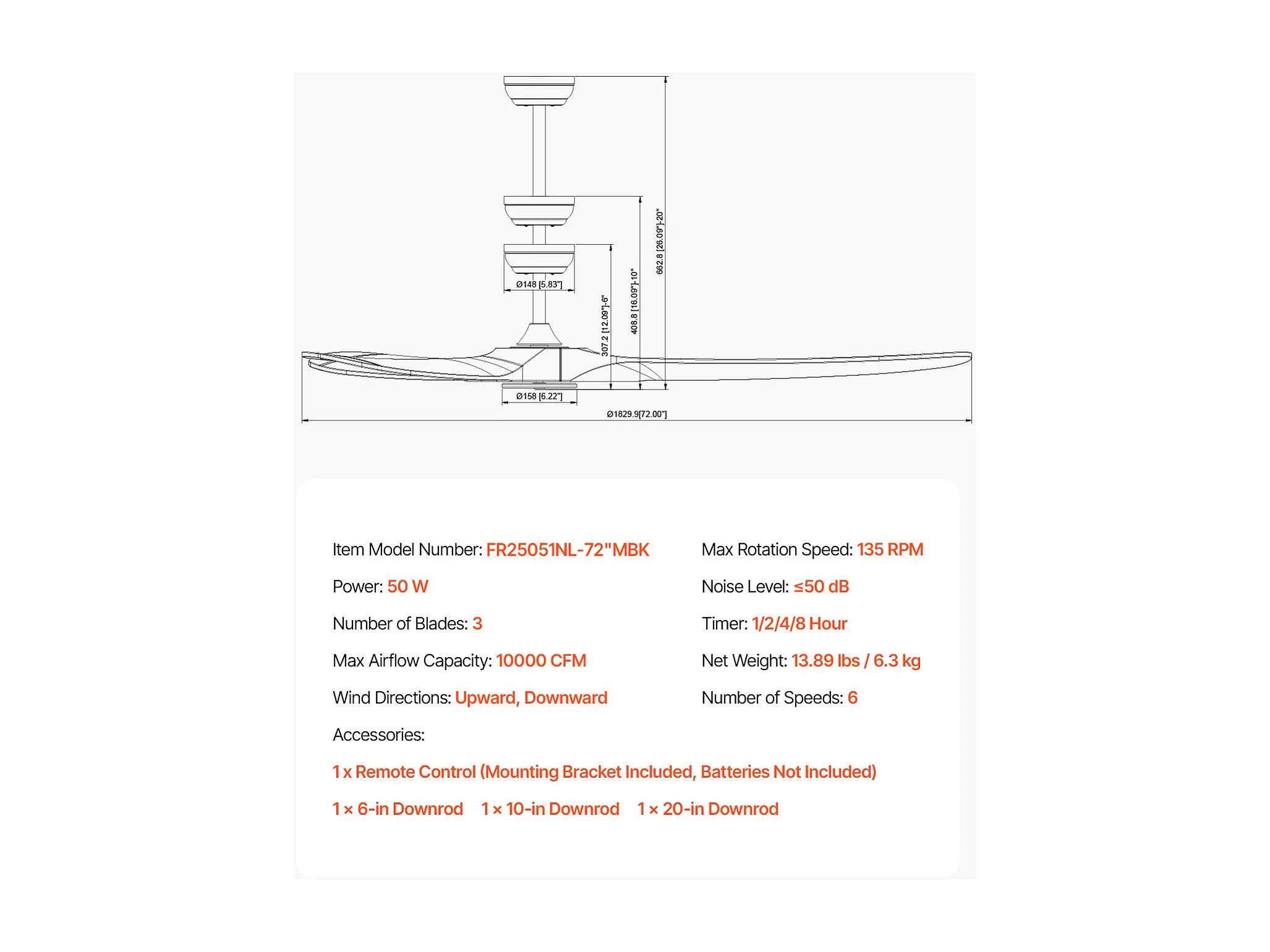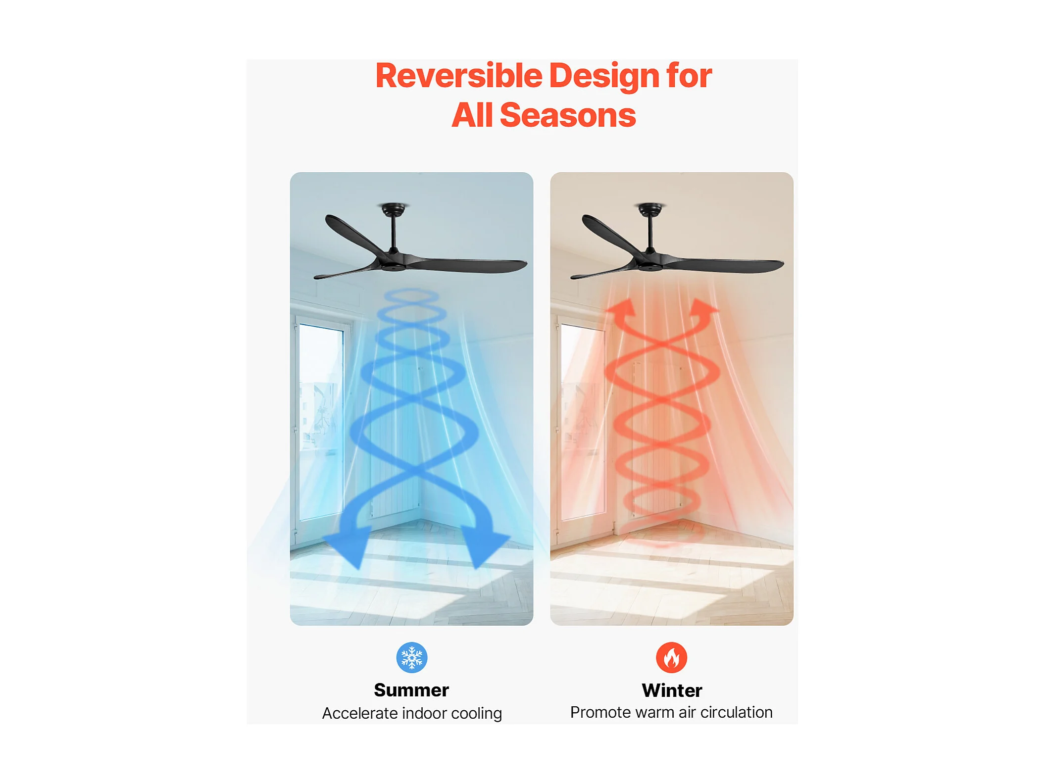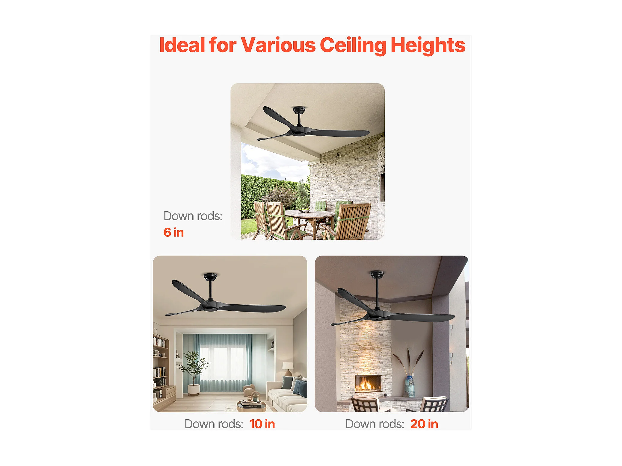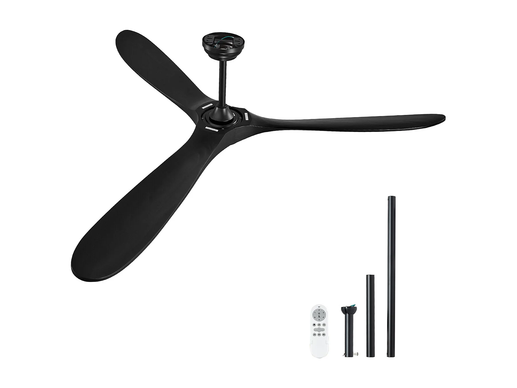 Ventilateur de Plafond à Pales en Bois SucceBuy 183cm sans Lumière avec Télécommande et Moteur Réversible Noir