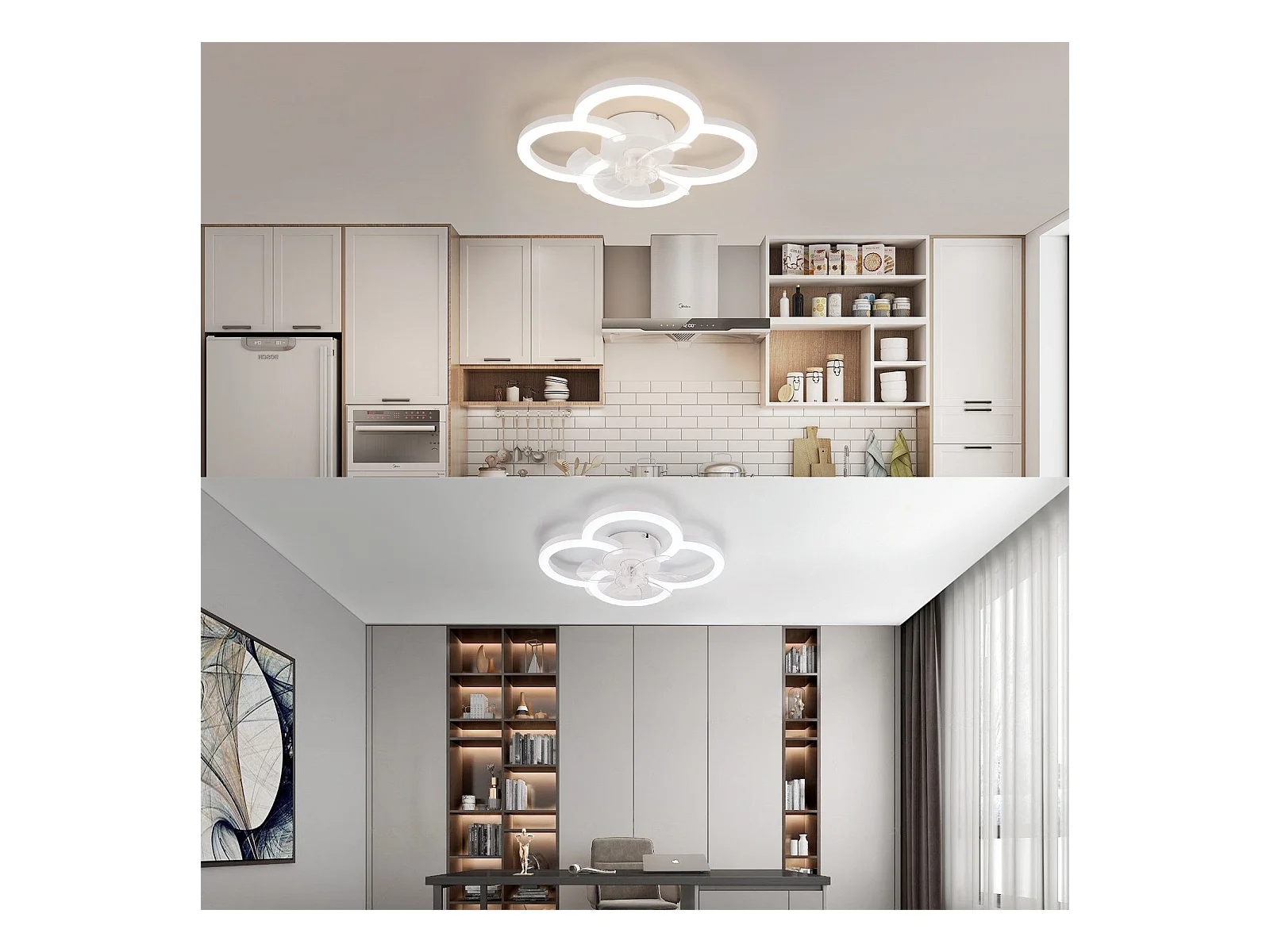 Ventilateur de plafond LED NETTLIFE avec éclairage silencieux et télécommande, plafonnier à intensité variable, minuterie à 6 vitesses, blanc