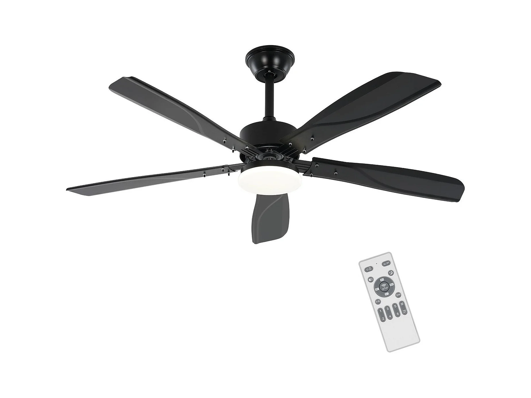 Ventilateur de plafond LED NETTLIFE avec éclairage - 40 W silencieux noir avec télécommande, variateur d'intensité, minuterie à 6 vitesses