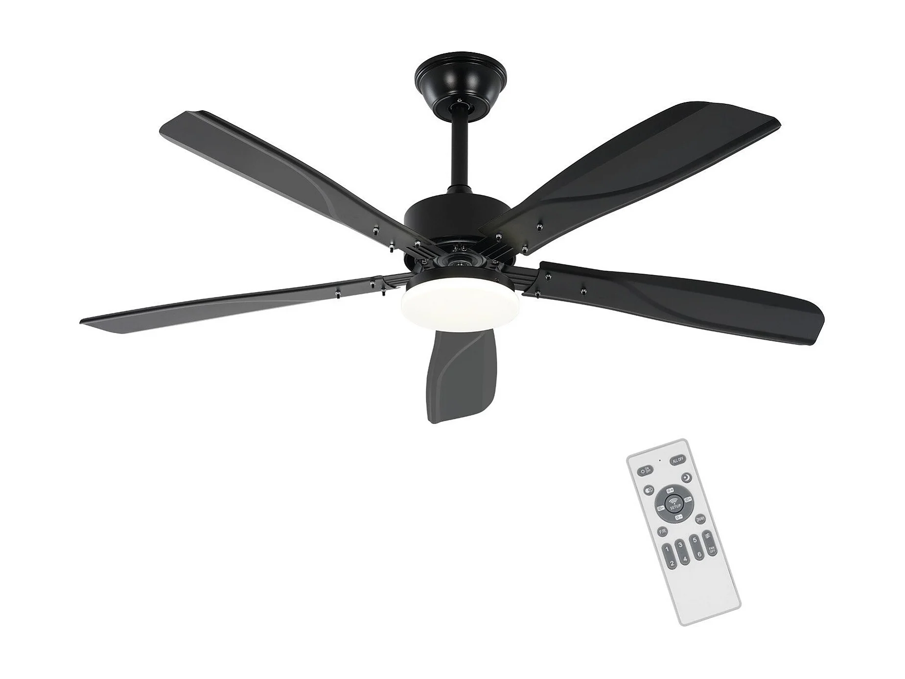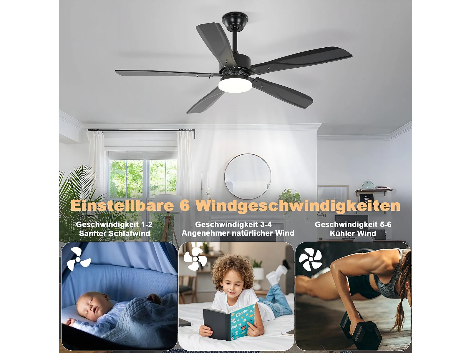 Ventilateur de plafond NETTLIFE avec éclairage LED silencieux à intensité variable 23W Noir 125 cm Ventilateurs avec lumière Minuterie 6 vitesses