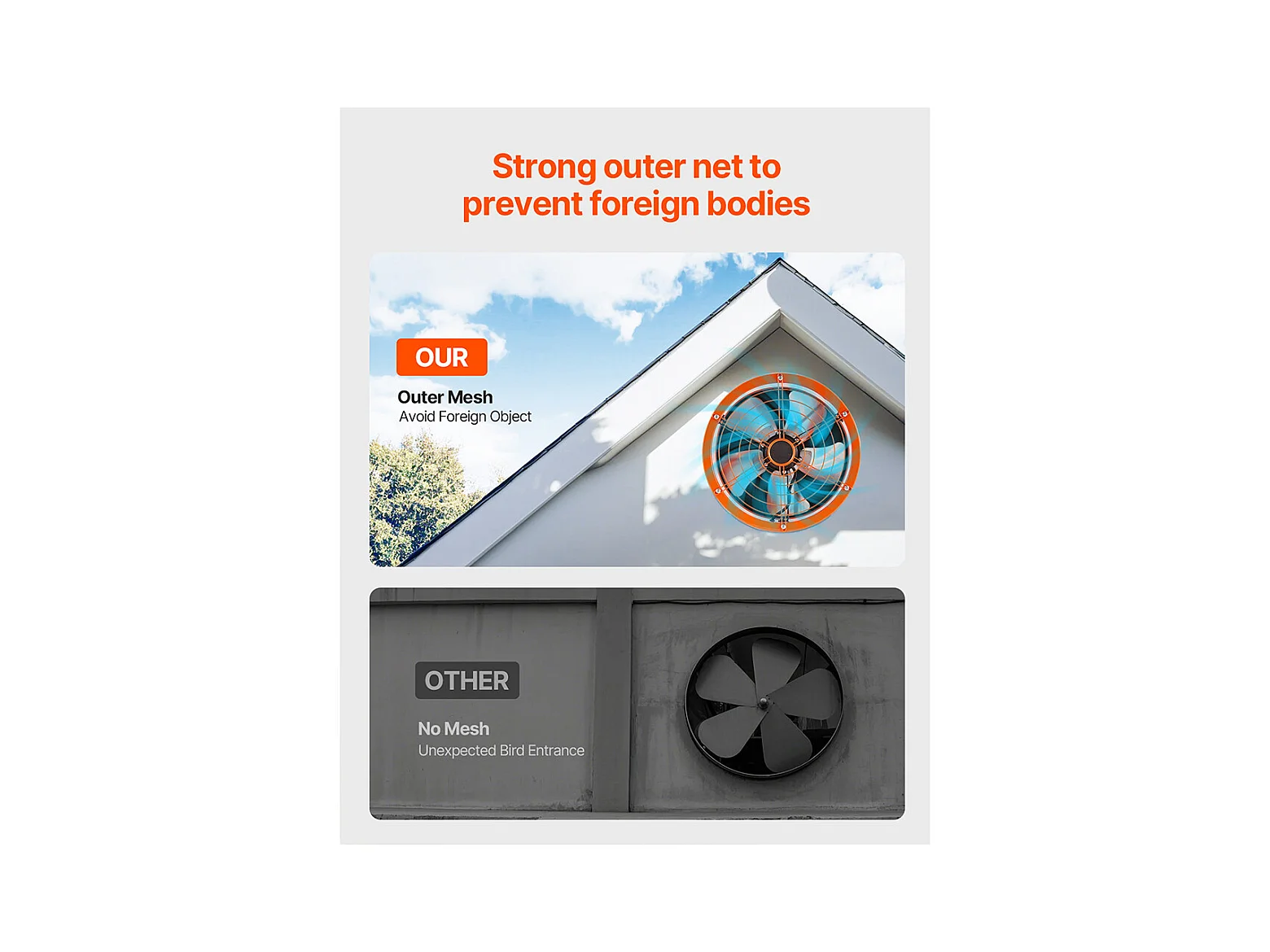 Ventilateur d'Extraction de Grenier SucceBuy, Ventilateur de Pignon, 35,6 cm 36,8 m³/min avec Thermostat Ajustable