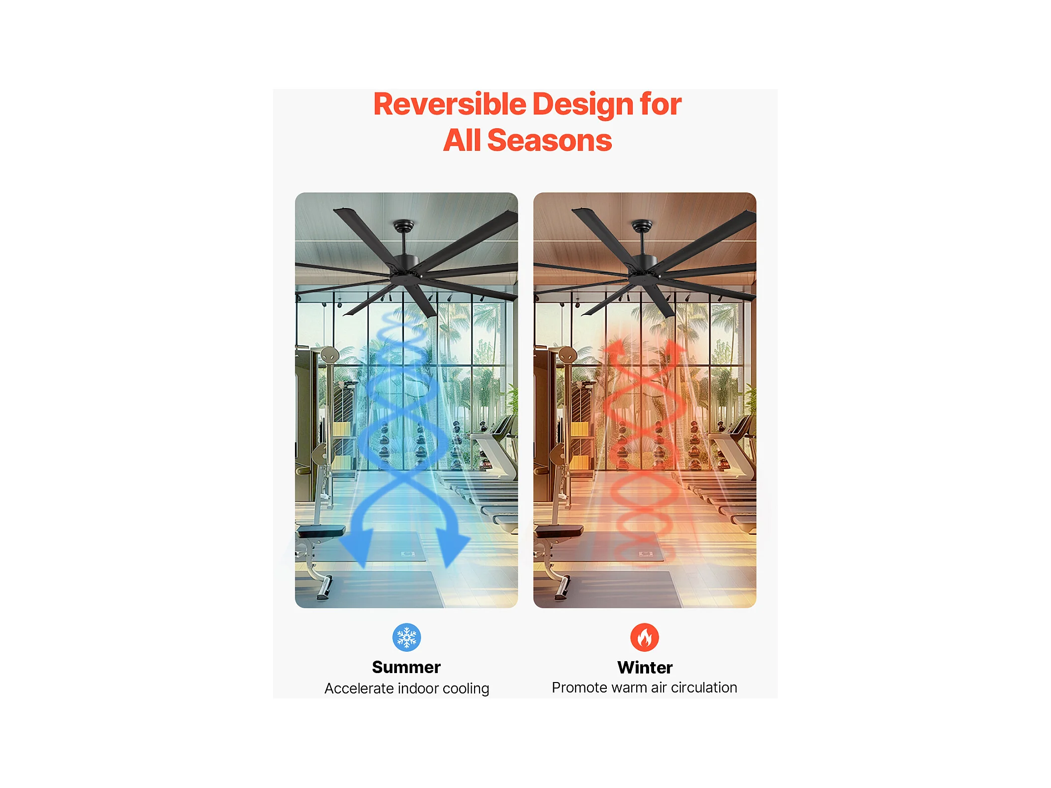 Ventilateur SucceBuy Ventilateur de Plafond 213 CM sans Lumière, Télécommande 6 Vitesses, 8 Pales en Aluminium, Ventilateur Extérieur Encastré Moderne