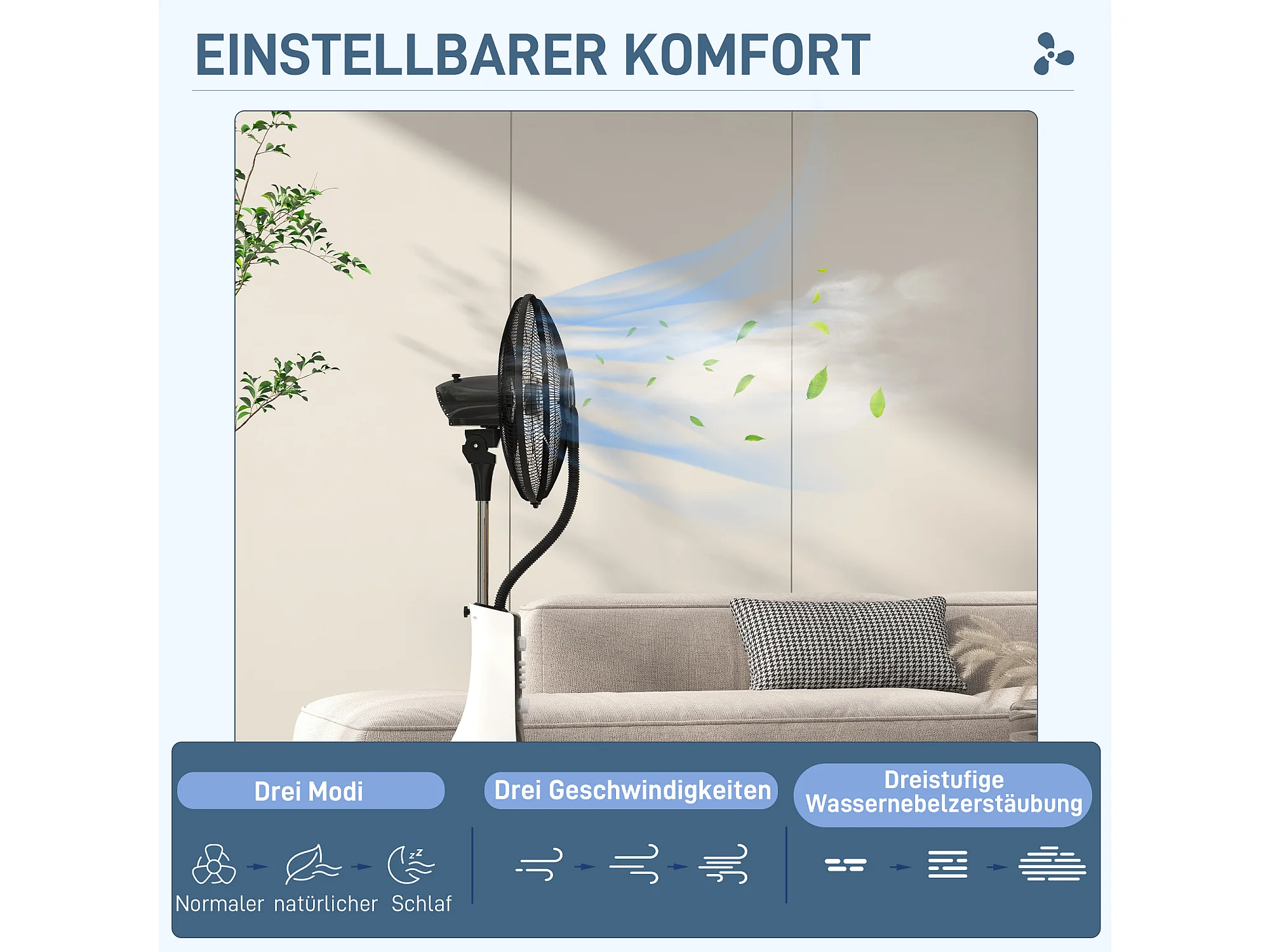 Ventilateur sur pied avec fonction de brume d'eau, 90W, 3L, 3 vitesses, oscillant, avec télécommande, noir (44.5x38.5x120cm)