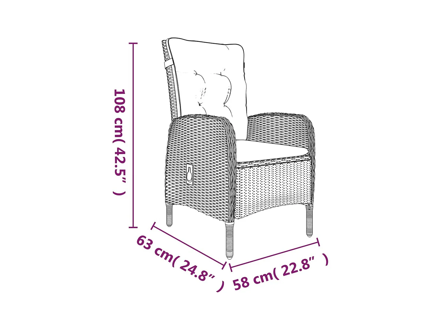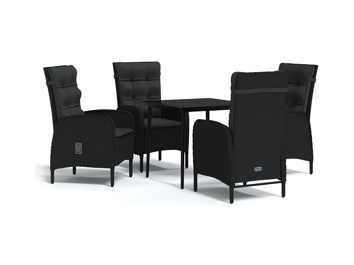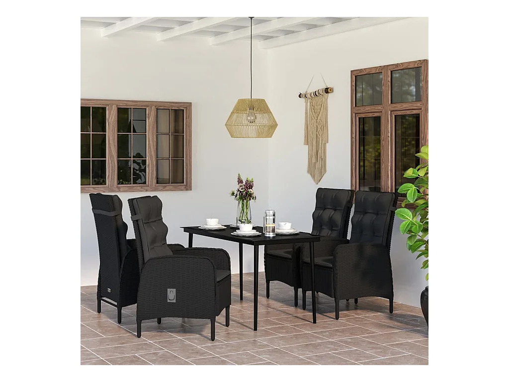 Zyldr Ensemble à manger de jardin coussins 5pcs Noir Résine tressée