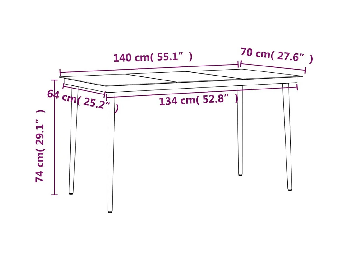 Lara Ensemble à manger de jardin 5 pcs Noir