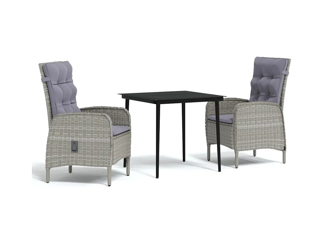 Zyldr Ensemble à manger jardin 3pcs avec coussins noir et gris