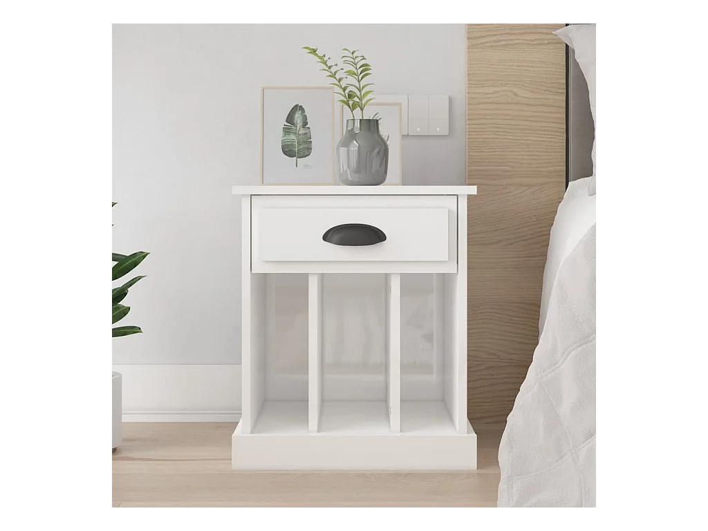 Oguz Table de chevet blanc brillant 40x30x50 cm bois d’ingénierie