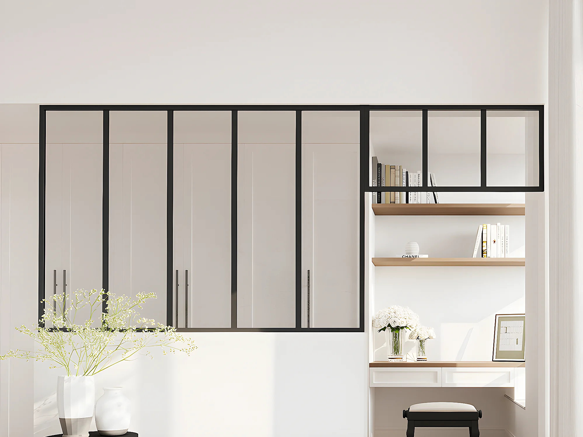 Verrière atelier avec imposte en aluminium thermolaqué - L150 x H105 + L83 x H40 cm - Noir - BAYVIEW