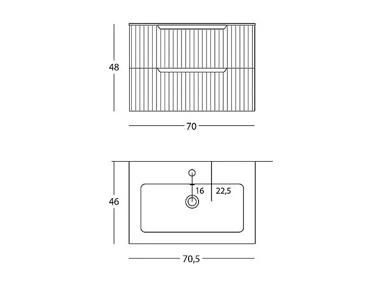 Version Vitrée Lynea À Nervures, Finition Gris Foncé, 2 Tiroirs Et Lavabo Central